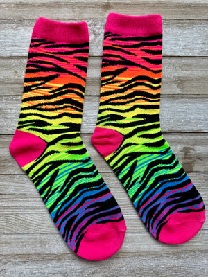 Neon Animal Print Unisex Mid-Calf Adult Socks Set