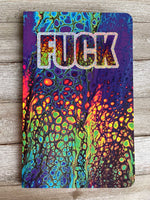 Colorful word art stickers feature the most versatile word in the English language, my vibrant artwork, and a holographic glitter border that flashes a rainbow of colors in the light. Each durable, weather-resistant vinyl sticker measures 3.88 inches by 1.78 inches.