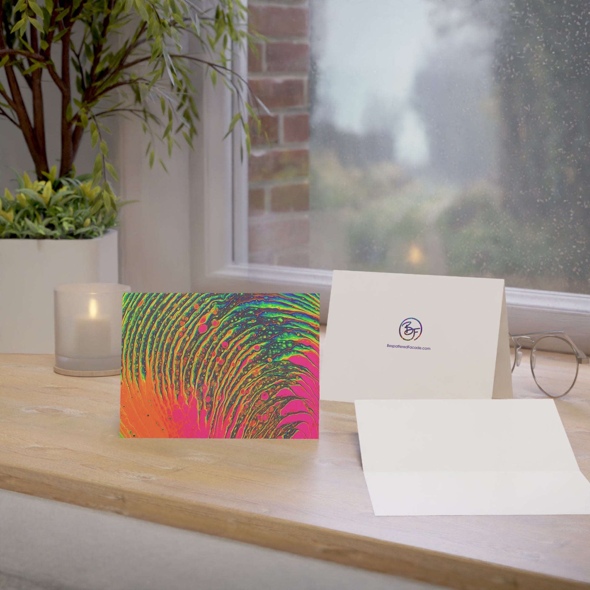 Bespattered Facade Neon Puddle Greeting Cards | Sets of 1, 10, 30, or 50