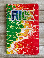 Each softcover notebook measures 5.25 x 8.25 inches and contains 144 pages of (70-pound) premium recycled paper. They have a durable, smyth-sewn binding that enables them to lay flat when opened. The (100-pound) laminated velvety soft-touch cover features a print of one of my art designs that extends to the inside cover as well for maximum color enjoyment. I also will sign the inside cover of each notebook with a metallic acid-free pen for a personalized touch.