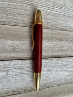 Purpleheart wood comes from trees that are native to the tropical rainforests of Central and South America. All cigar twist pens are handmade here on the farm by my dad. Each pen comes with black ink, and has a locking refill mechanism that accept Cross-style refills. You will receive the exact pen pictured.