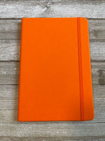 Each hardcover notebook measures 5.75 x 8.35 inches and contains 212 pages of lined off-white paper. They lay flat when opened, have elastic closures and a built-in ribbon bookmark.