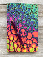 Each softcover notebook measures 5.25 x 8.25 inches and contains 144 pages of (70-pound) premium recycled paper. They have a durable, smyth-sewn binding that enables them to lay flat when opened. The (100-pound) laminated velvety soft-touch cover features a print of one of my art designs that extends to the inside cover as well for maximum color enjoyment. I also will sign the inside cover of each notebook with a metallic acid-free pen for a personalized touch.