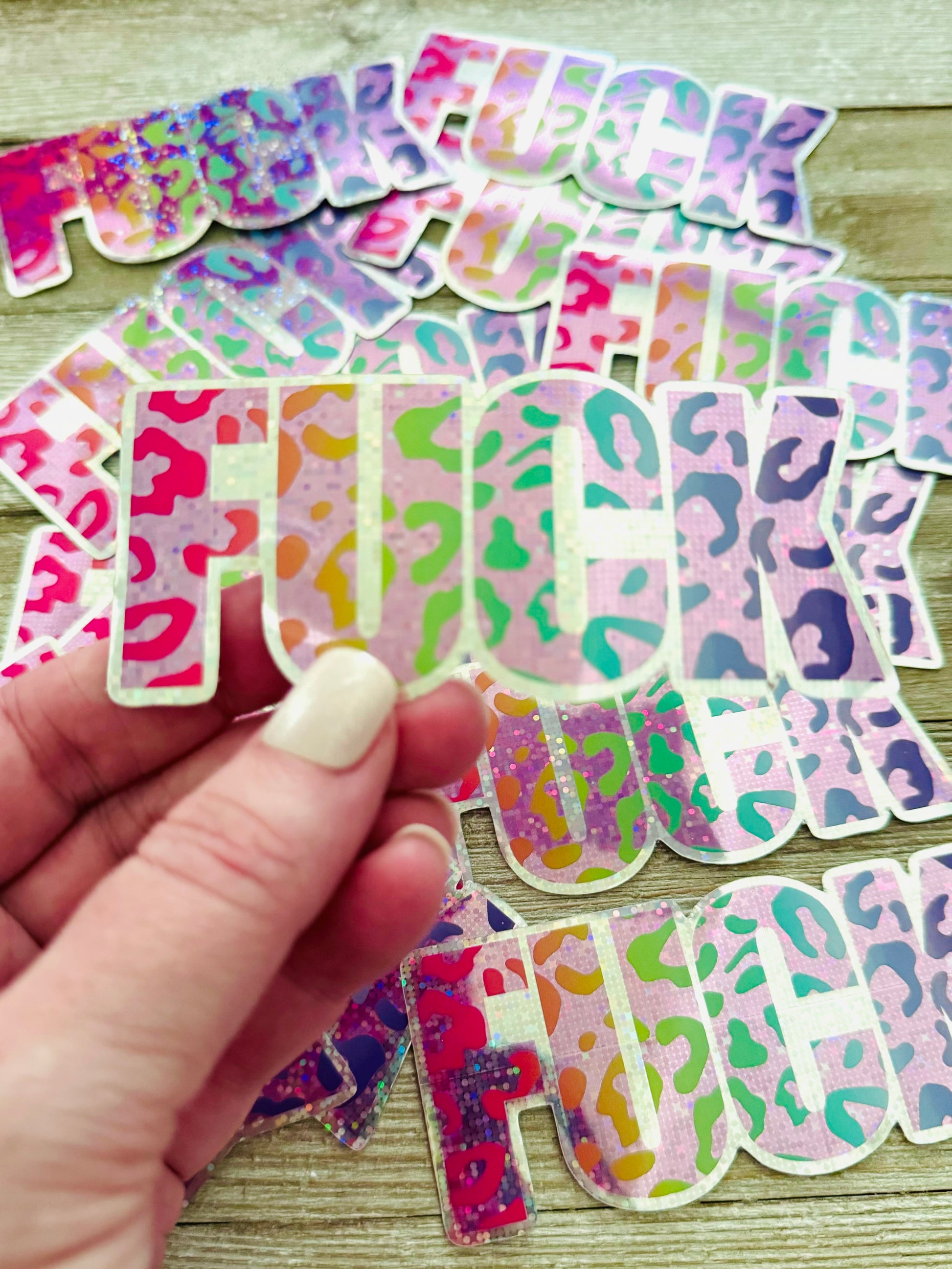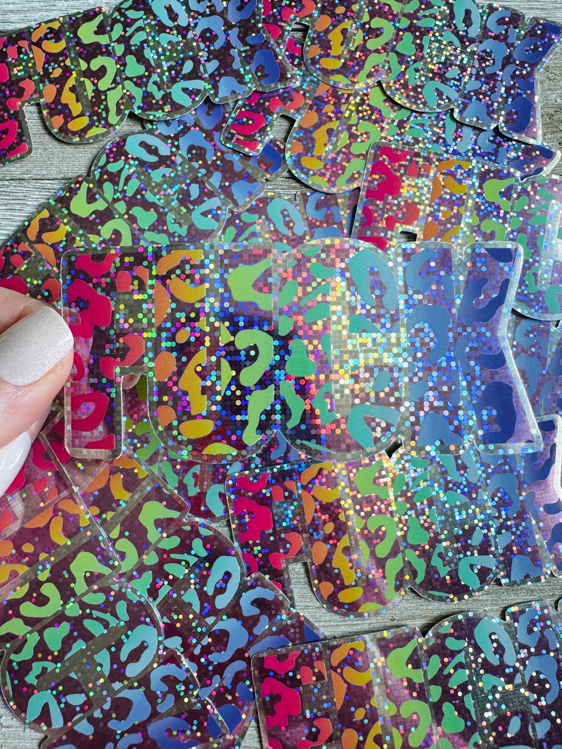 It's my favorite word, and if it isn't yours as well... you should really reconsider. These colorful word art stickers feature the most versatile word in the English language, my vibrant artwork, and a holographic glitter border that flashes a rainbow of colors in the light.