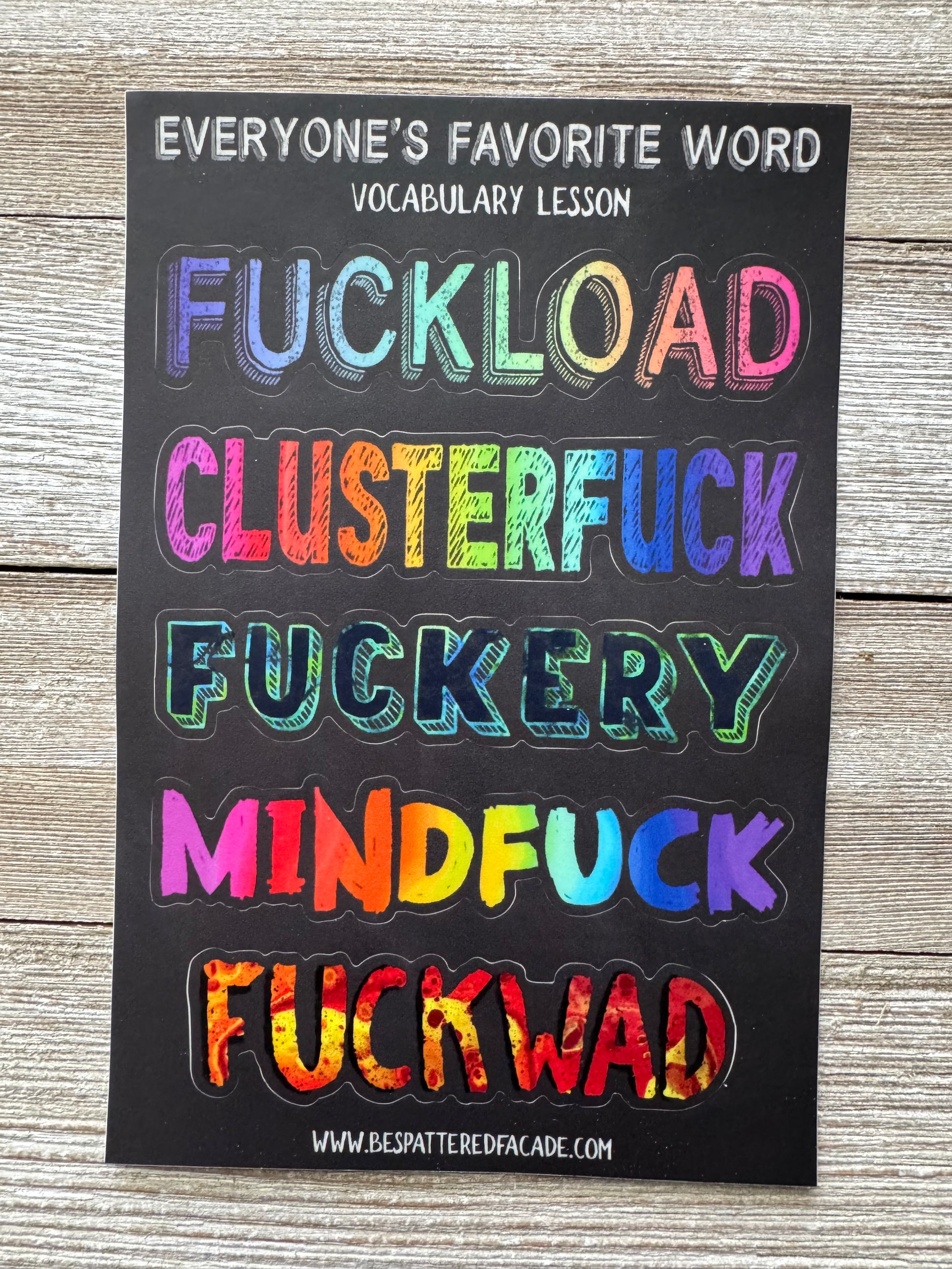 These educational word art sticker sheets feature five (5) colorful sticker designs to help expand your fucking vocabulary skills.