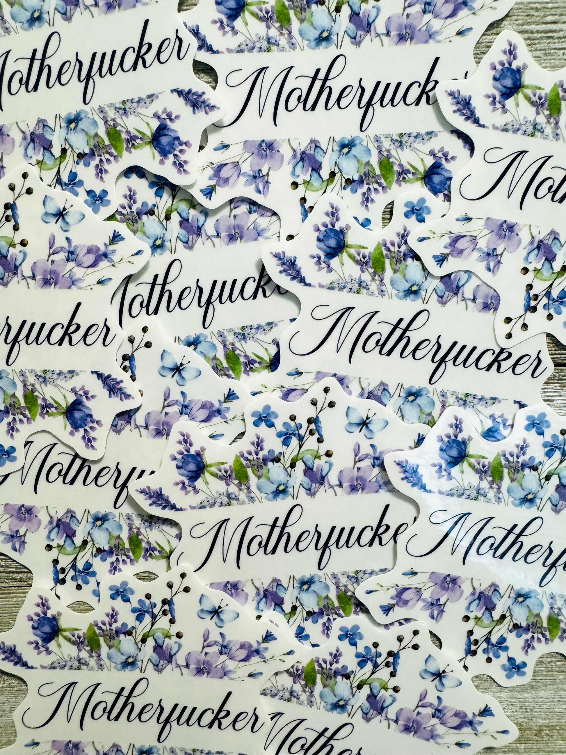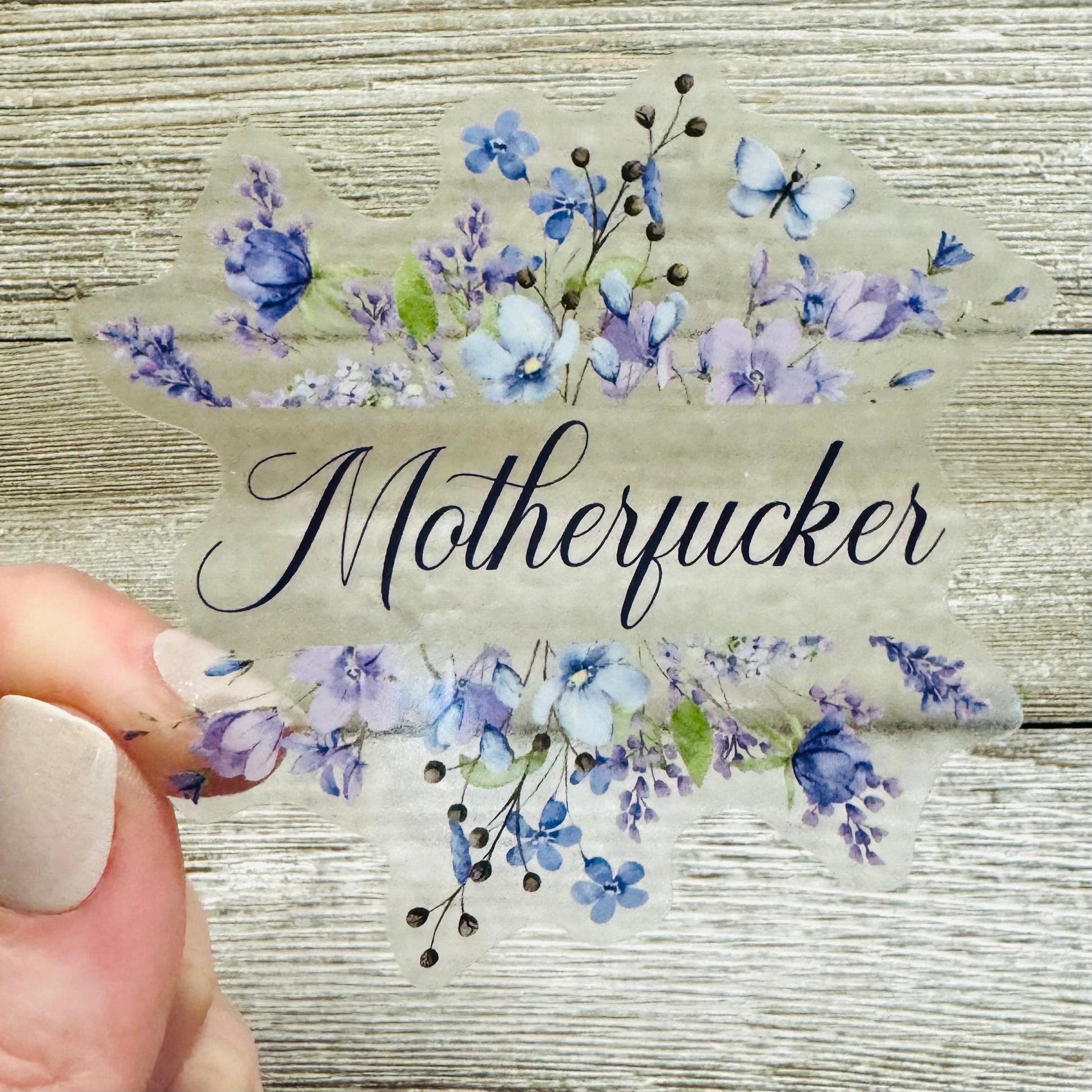 These beautiful blue floral word art stickers feature what I assume is Samuel L Jackson's favorite word on a clear vinyl sticker.