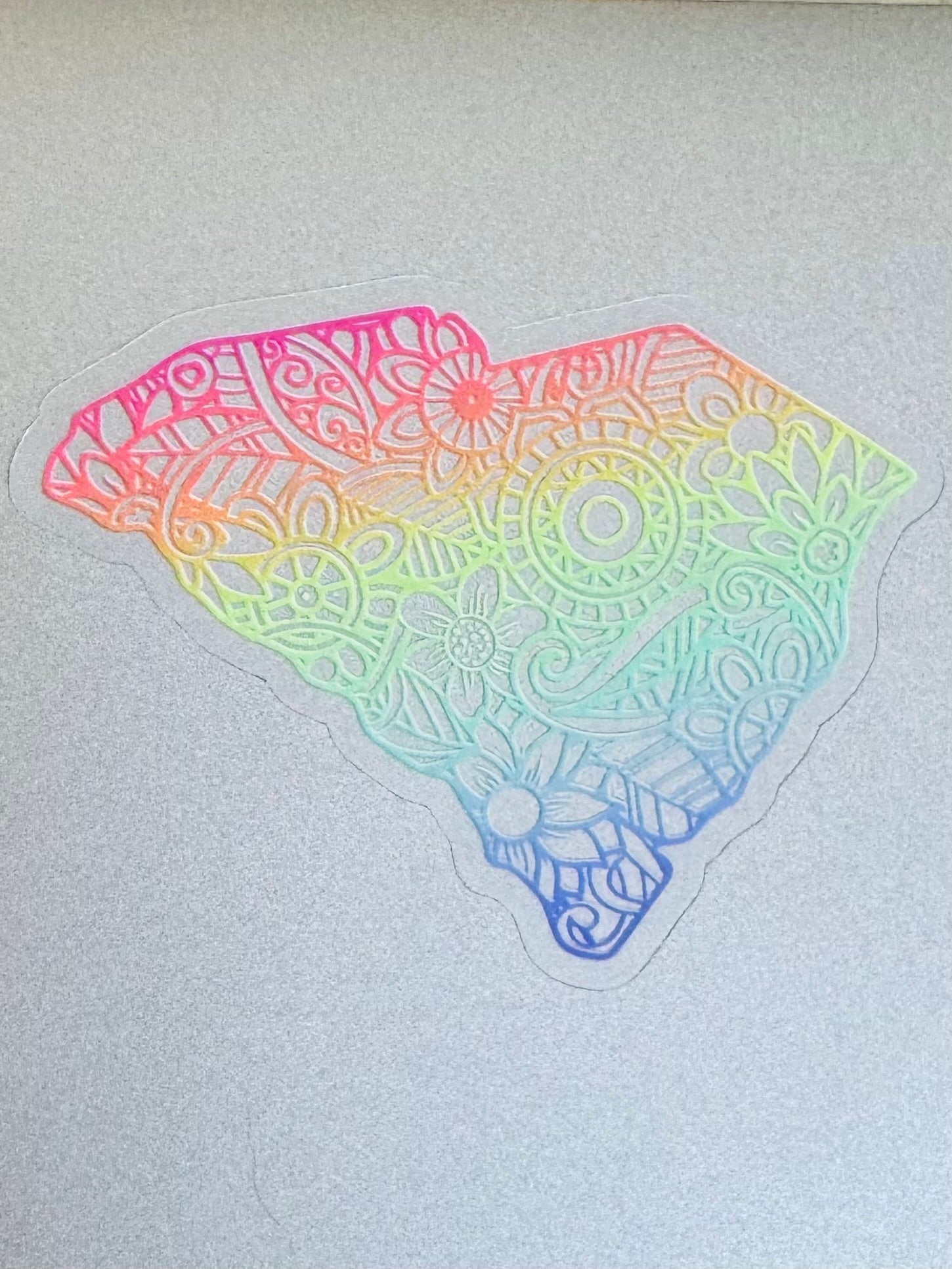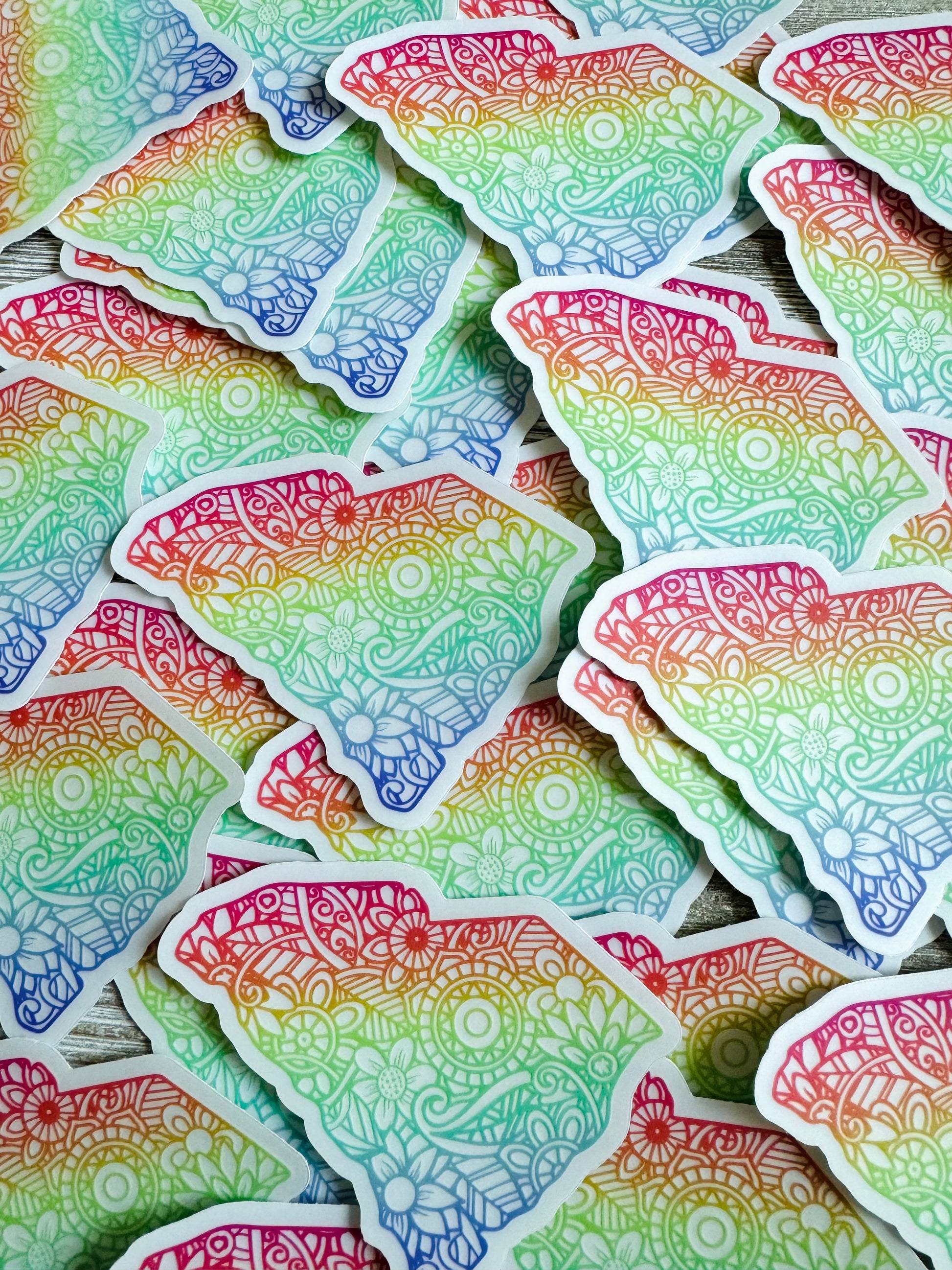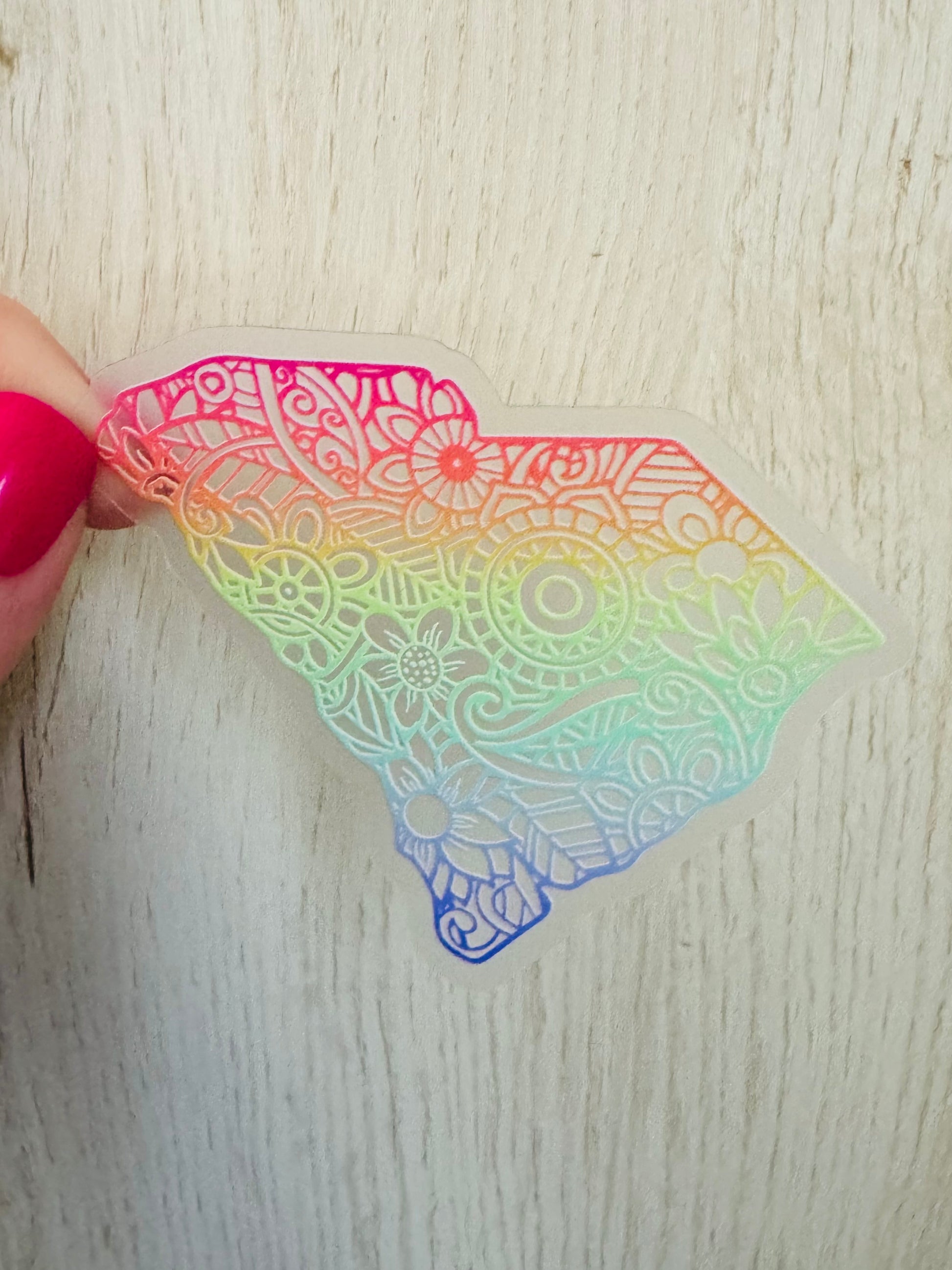 These beautiful rainbow floral stickers feature the state of South Carolina a clear vinyl sticker.