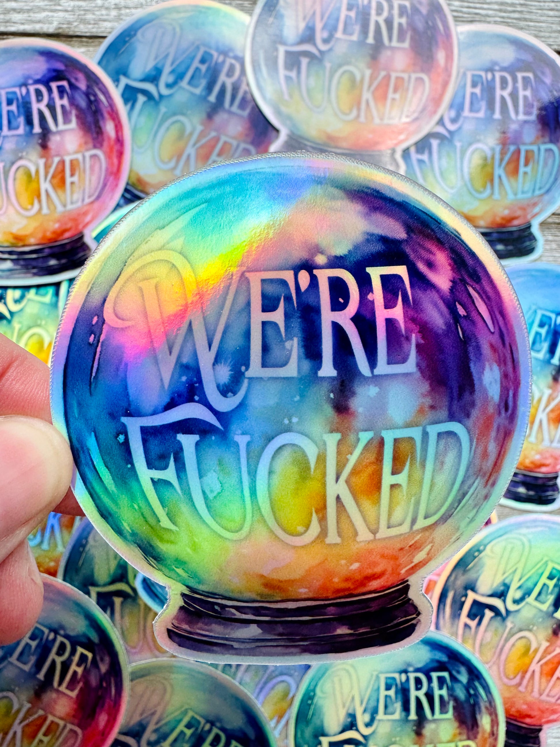 These colorful art stickers feature a rainbow crystal ball that makes a 100% factual statement on holographic vinyl that flashes a rainbow of colors in the light.