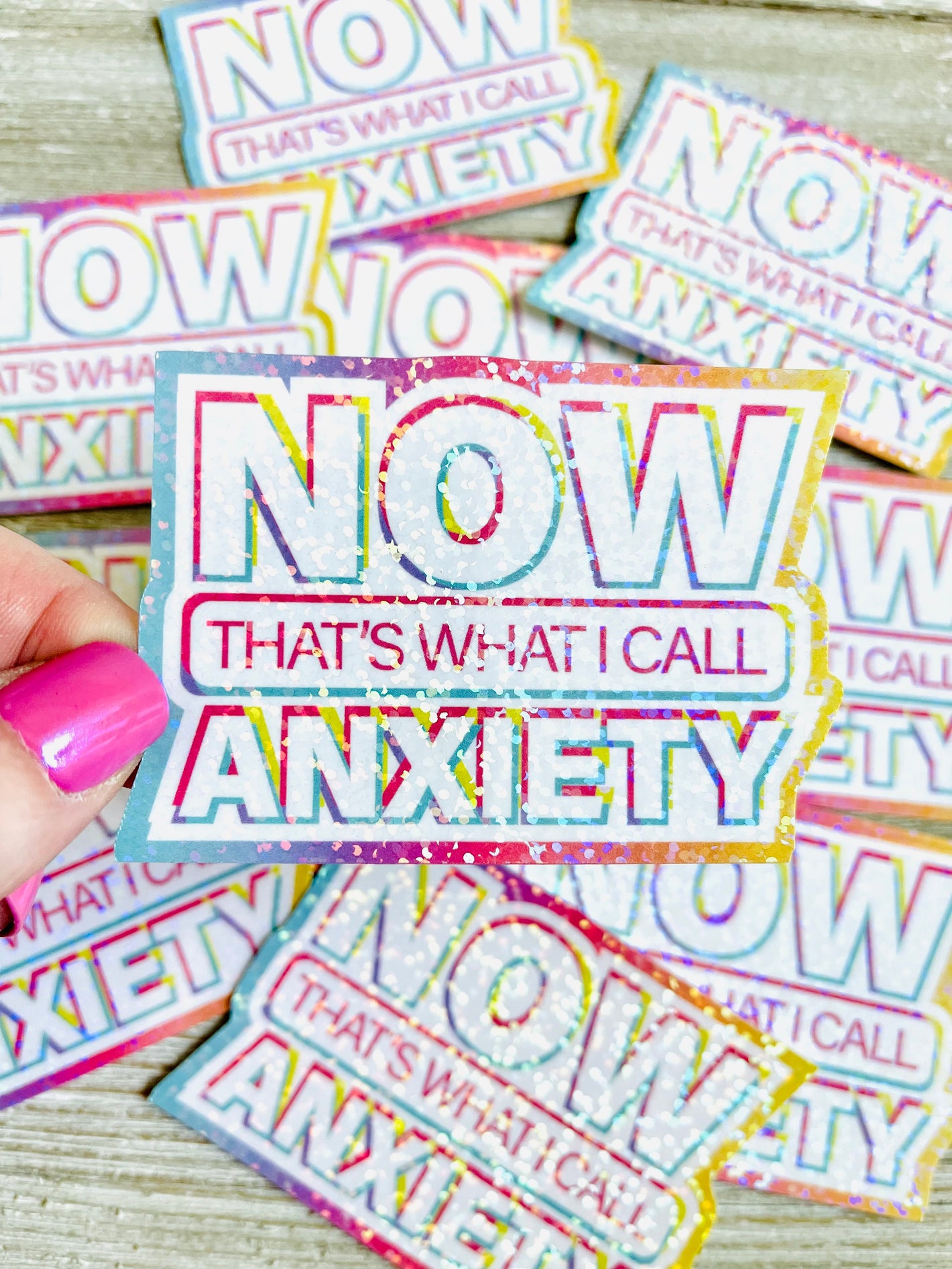 Nikki's Curated Color Collection"Now That's What I Call Anxiety" Colorful 90s Flashback Holographic Dots Sticker
