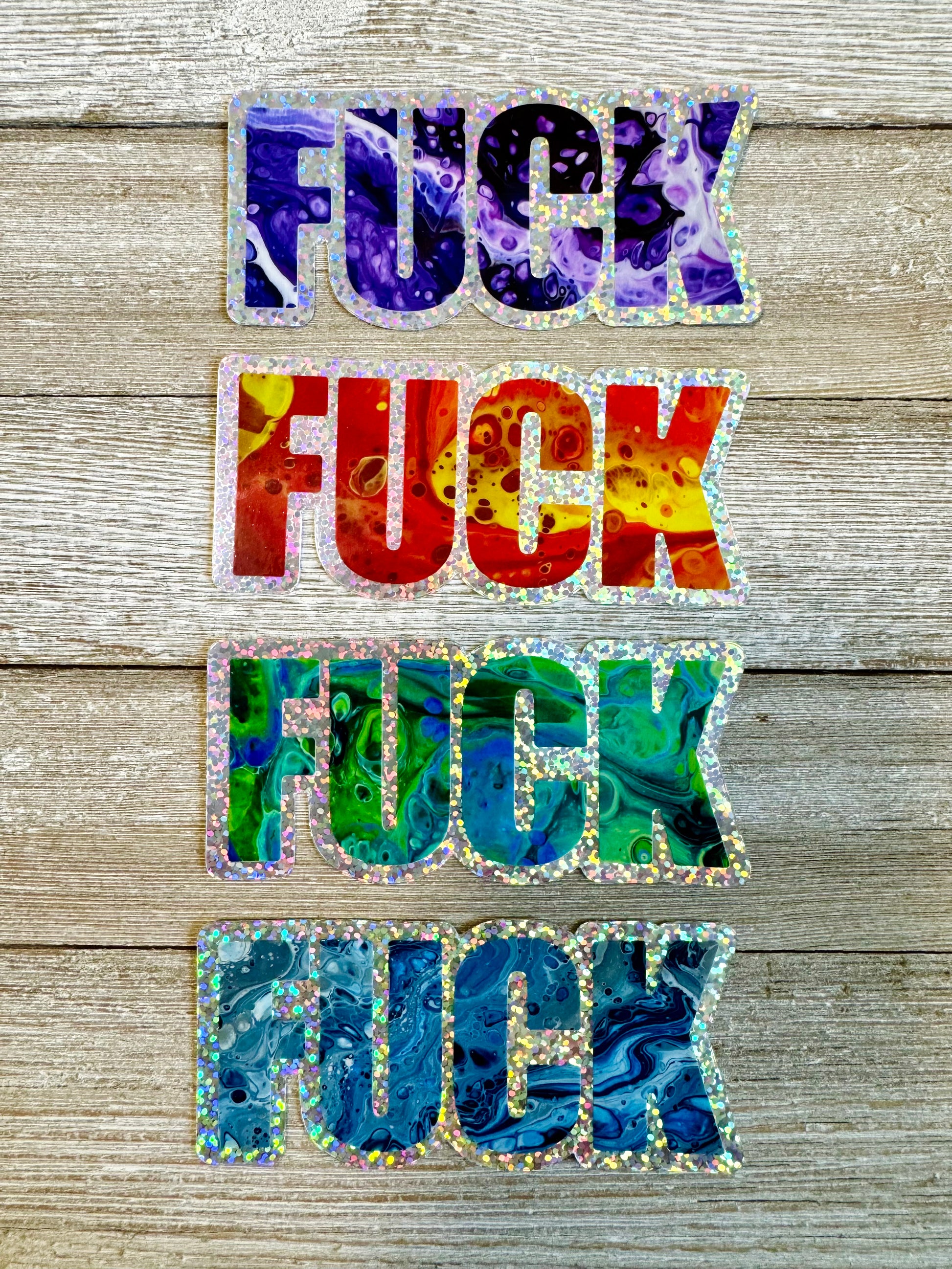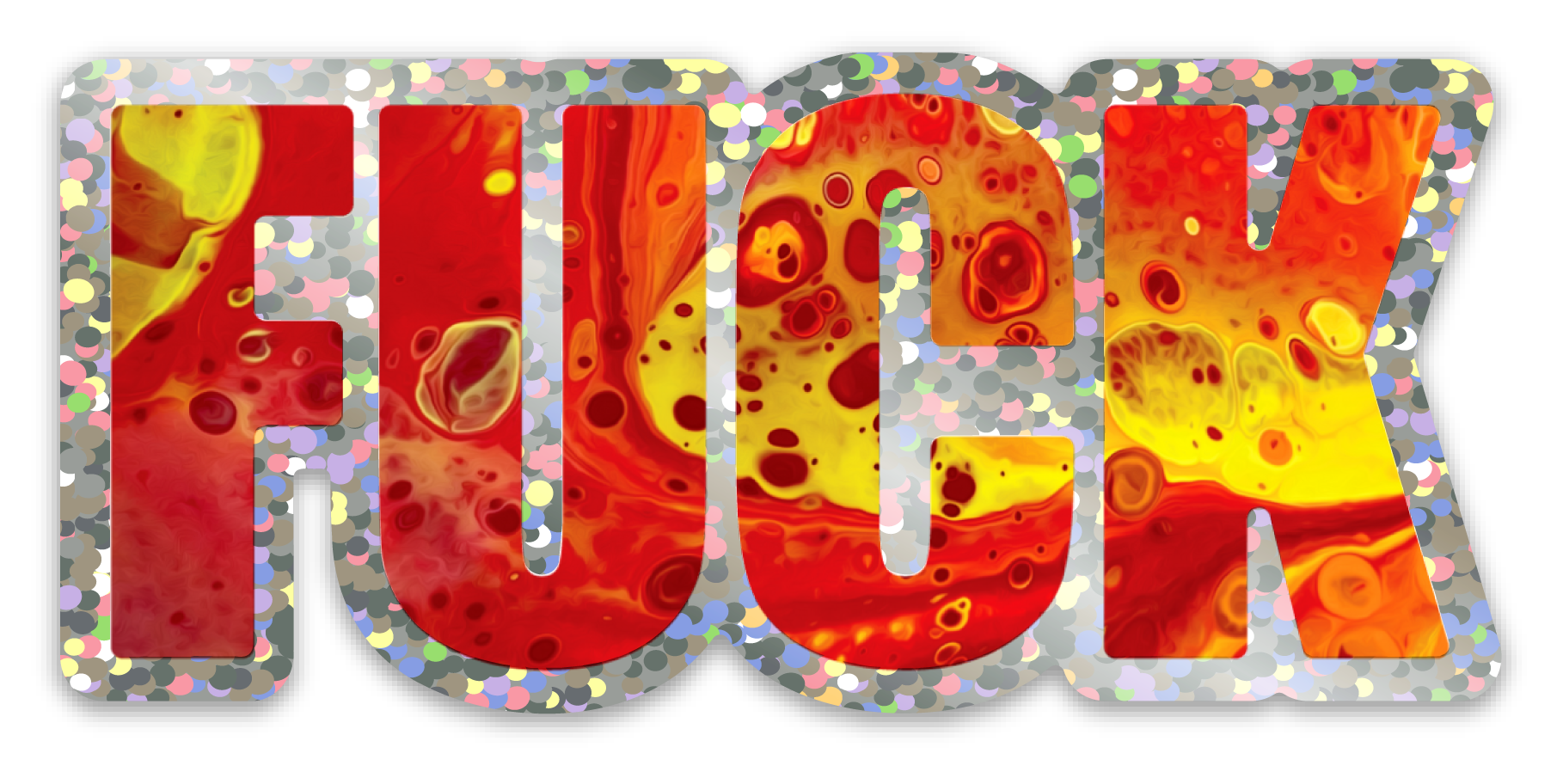 It's my favorite word, and if it isn't yours as well... you should really reconsider. These colorful word art stickers feature the most versatile word in the English language, my vibrant artwork, and a holographic glitter border that flashes a rainbow of colors in the light.