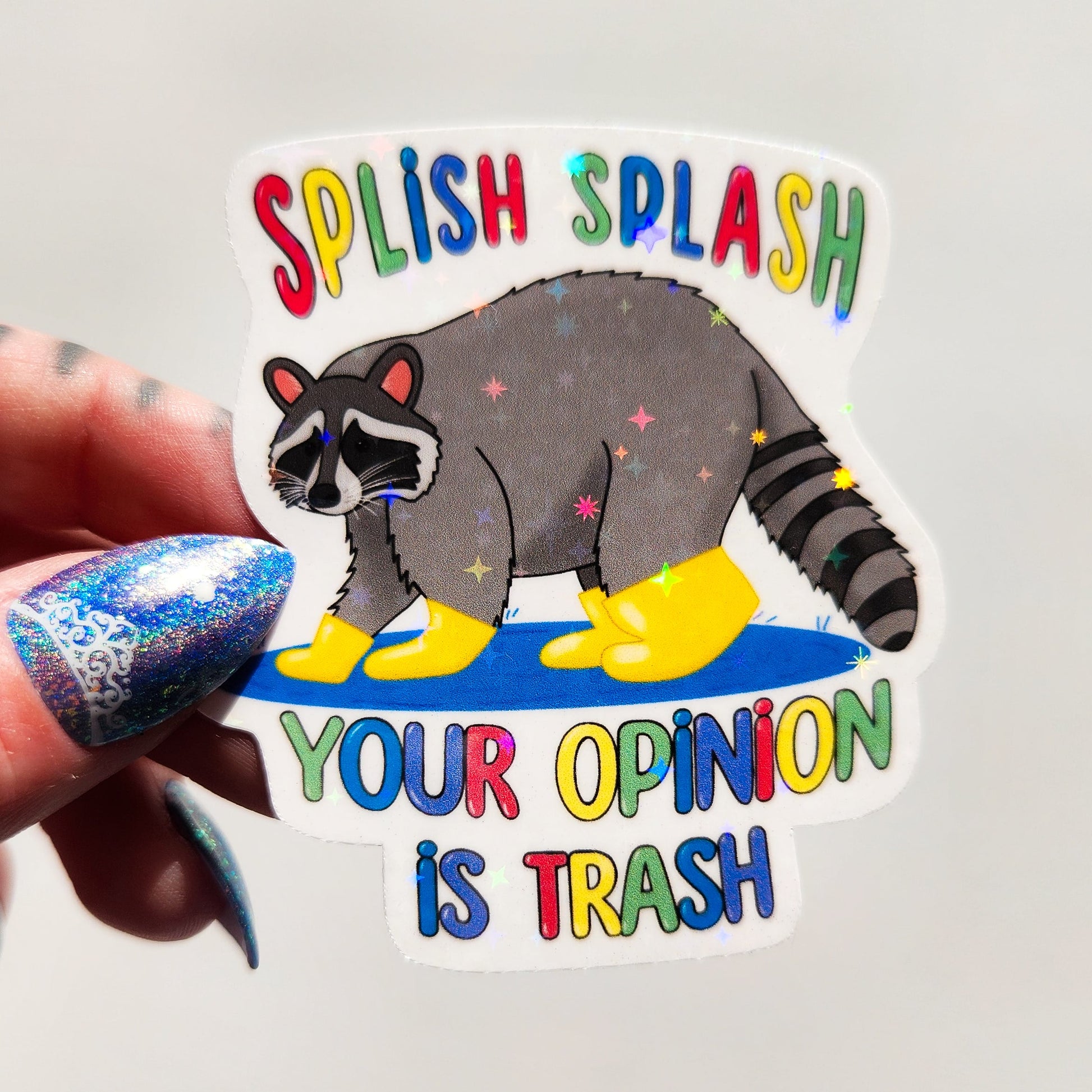 Splish Splash Your Opinion Is Trash Holographic Sticker, 2.5 x 2.8 in.