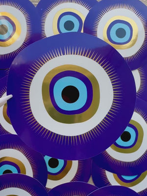 Bespattered Facade Metallic Gold and Blue Evil Eye Sticker