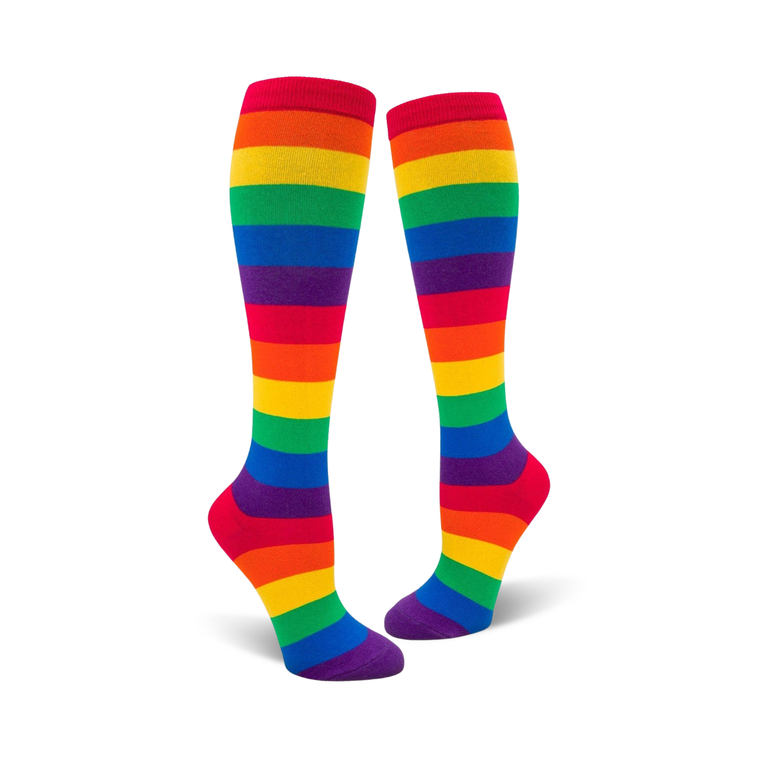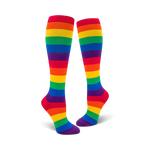 Who knew that Pride could look this good? With these knee-high rainbow striped socks, you'll be walking on sunshine every day. These colorful socks are perfect for showing off your pride, bringing a little extra joy into your daily routine, or just adding a pop of fun to your outfit. So slip into a pair today and let your feet do the talking.