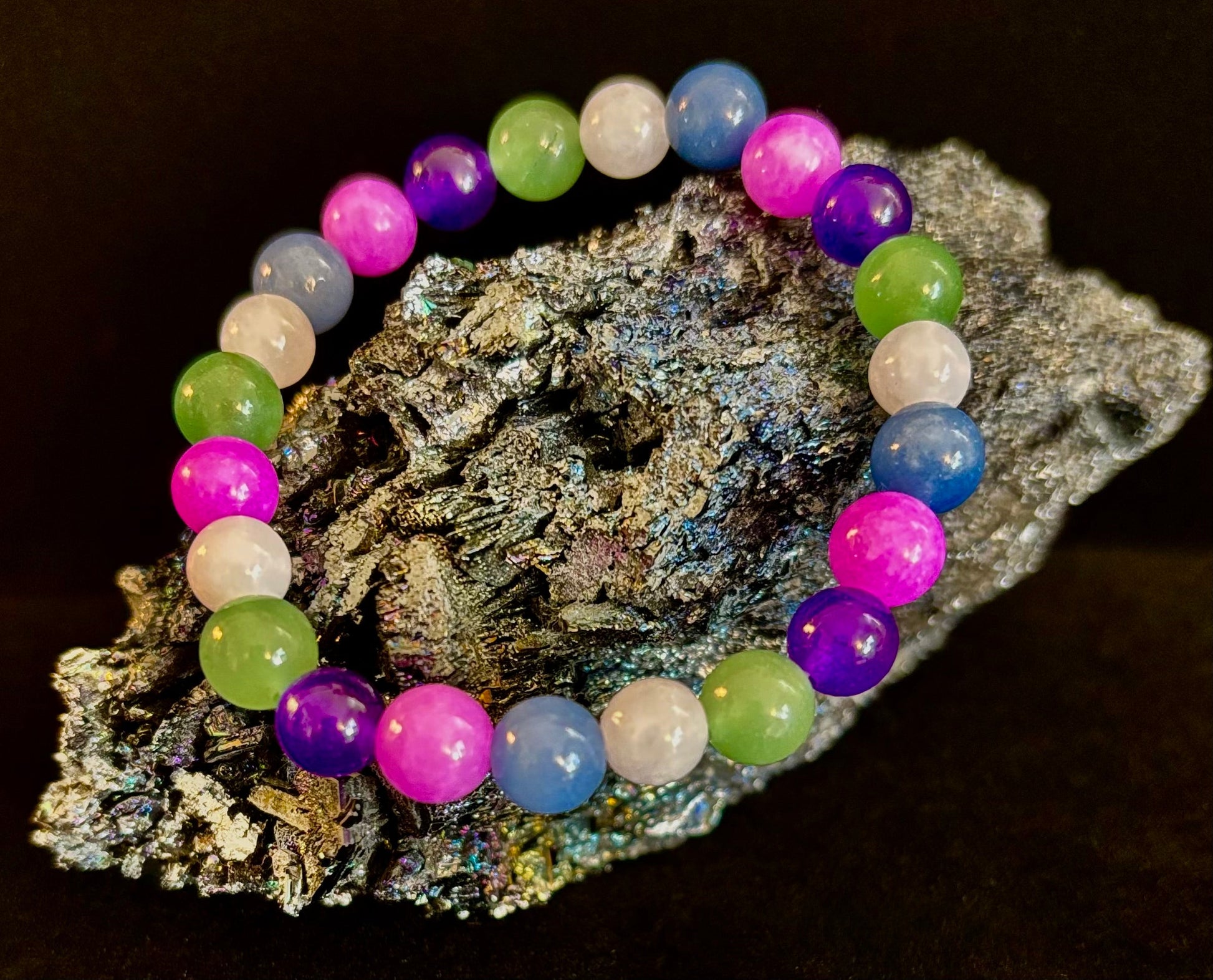 Cosmic Skittles Bracelet – 8mm Rainbow Energy for Balance, Strength & Healing (Small to Medium Wrists)