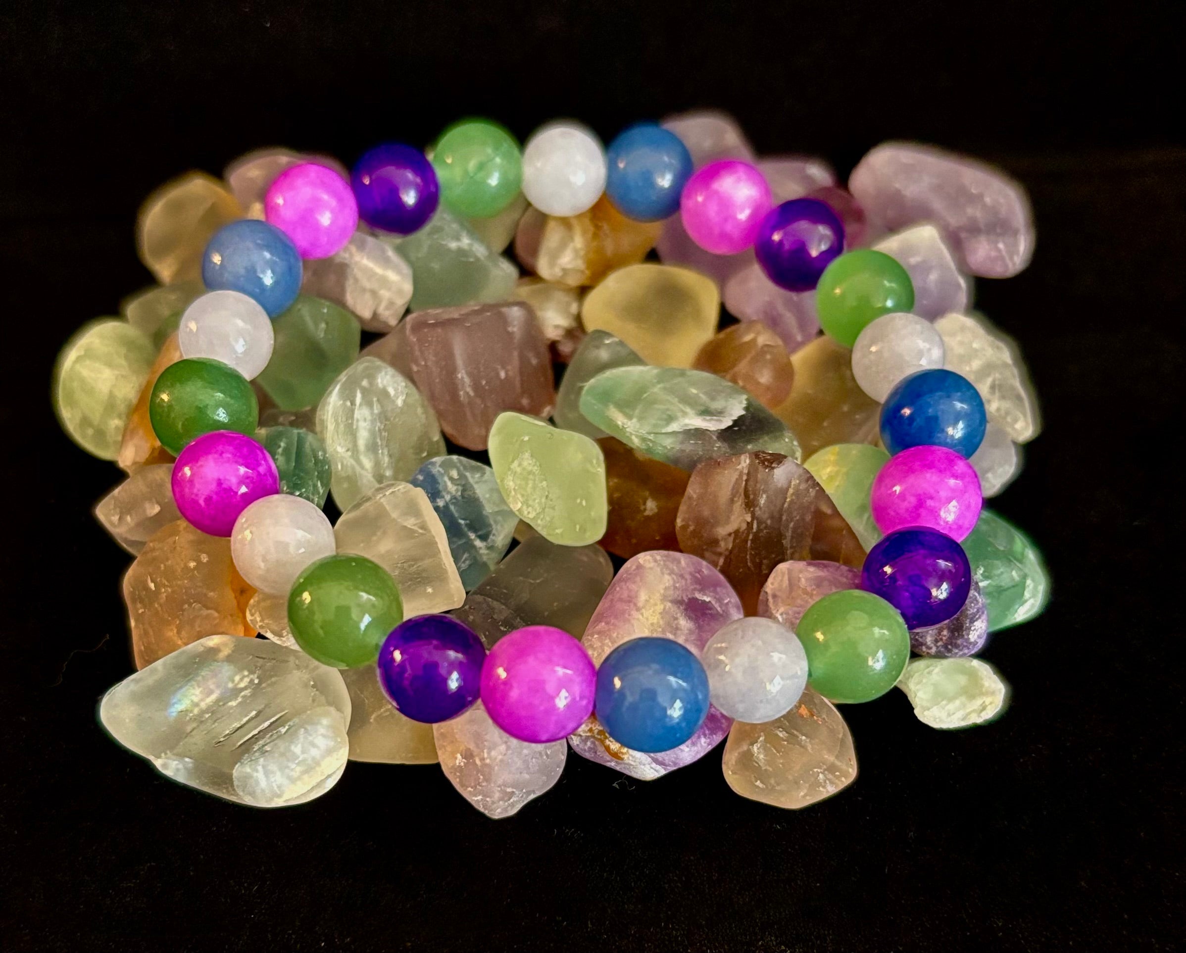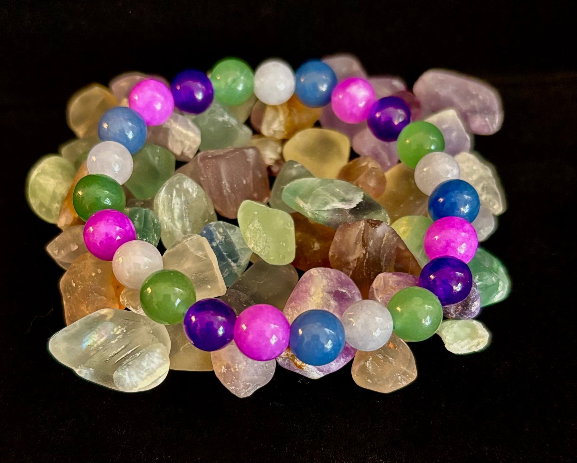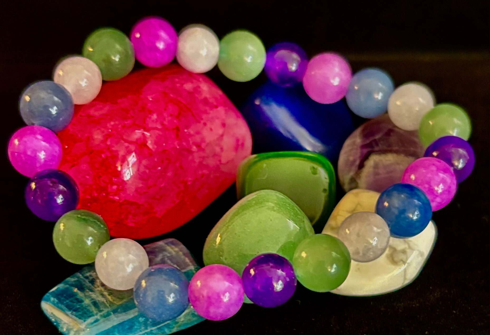 Add a burst of color and healing energy to your day with our Cosmic Skittles Colored Agate Bead Bracelet, crafted from vibrant 8mm polished agate stones in a radiant mix of hues. Known as a powerful grounding and stabilizing crystal, agate helps balance the mind, body, and spirit, making this bracelet both beautiful and energetically supportive.