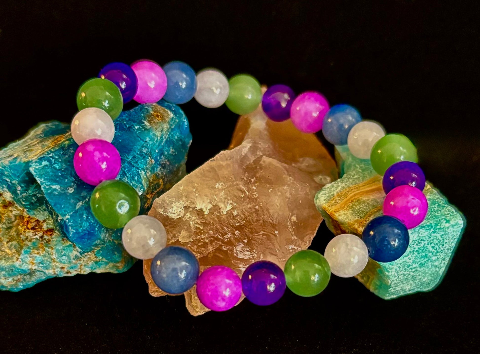 Whether you're dressing up your day or centering your energy, this colorful agate bracelet adds positivity, protection, and personal style to every step.