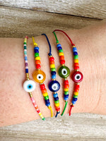 Each handmade string bracelet is adjustable from approx. 5.5 inches up to 11 inches.