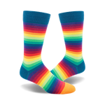 With this 7-pack of Rainbow Gradient Stripe socks, you'll have endless color combinations to match your every mood and style. It's like having a rainbow party on your feet! And with their crew-length design, they're perfect for any occasion, from casual Fridays to pride parades.