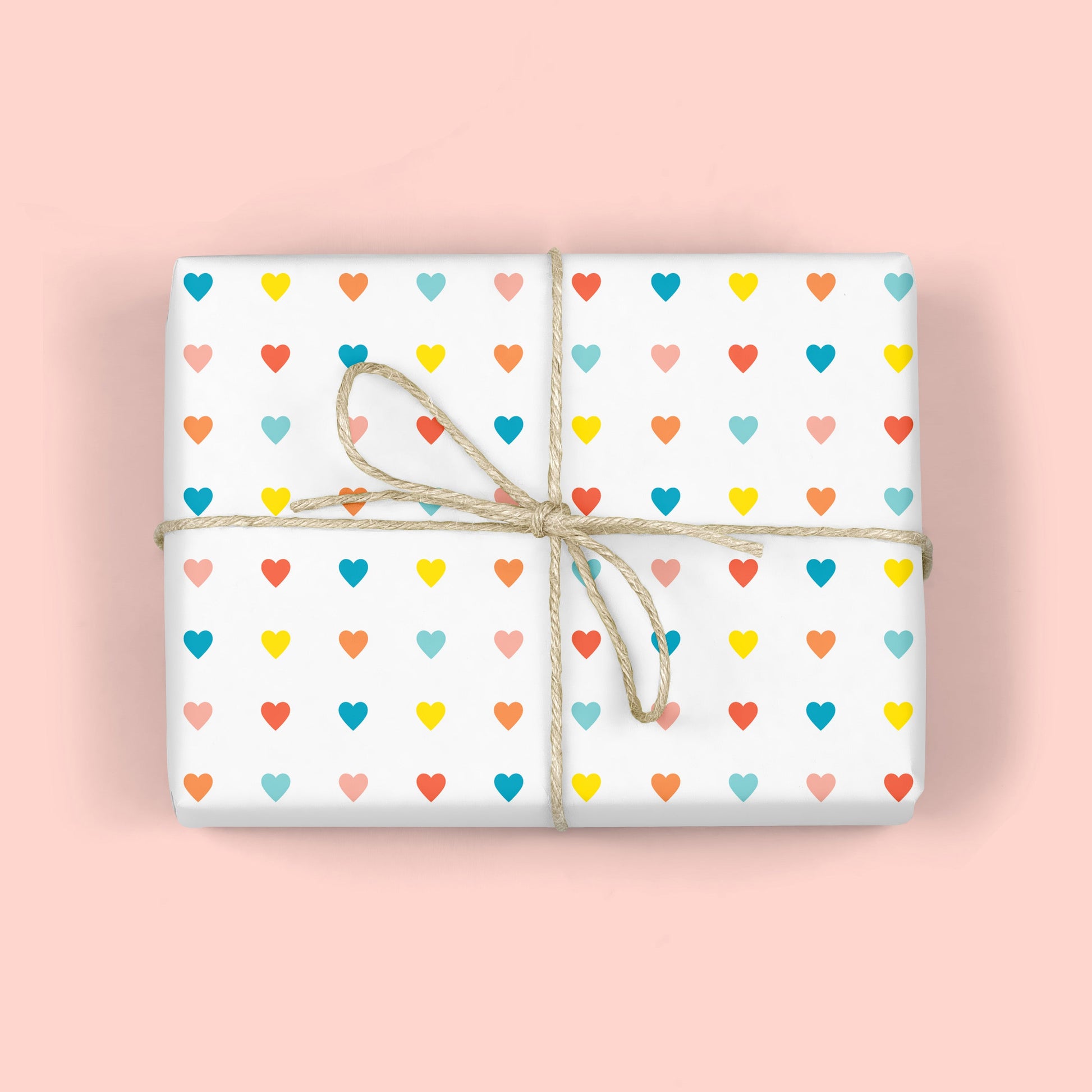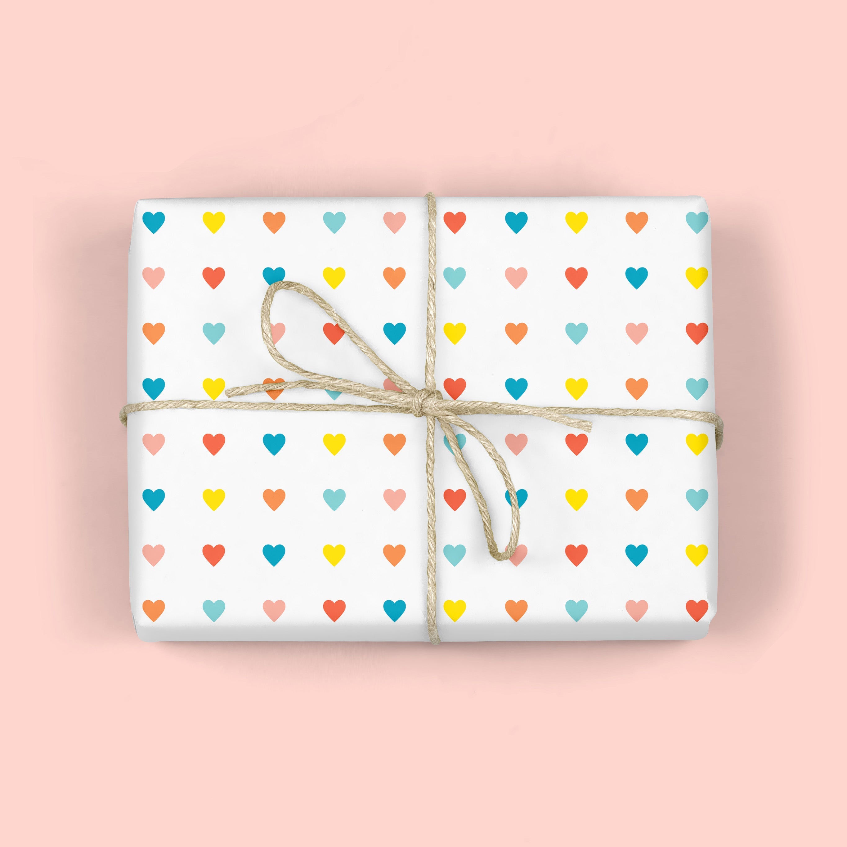 Modern, Fun and Sweet!. Who wouldn't love a gift in this colorful RAINBOW HEARTS wrapping paper in fun colors. Perfect paper for a Valentines Gifts, Pride gifts, Wedding gifts, Anniversary or even a shower or birthday.