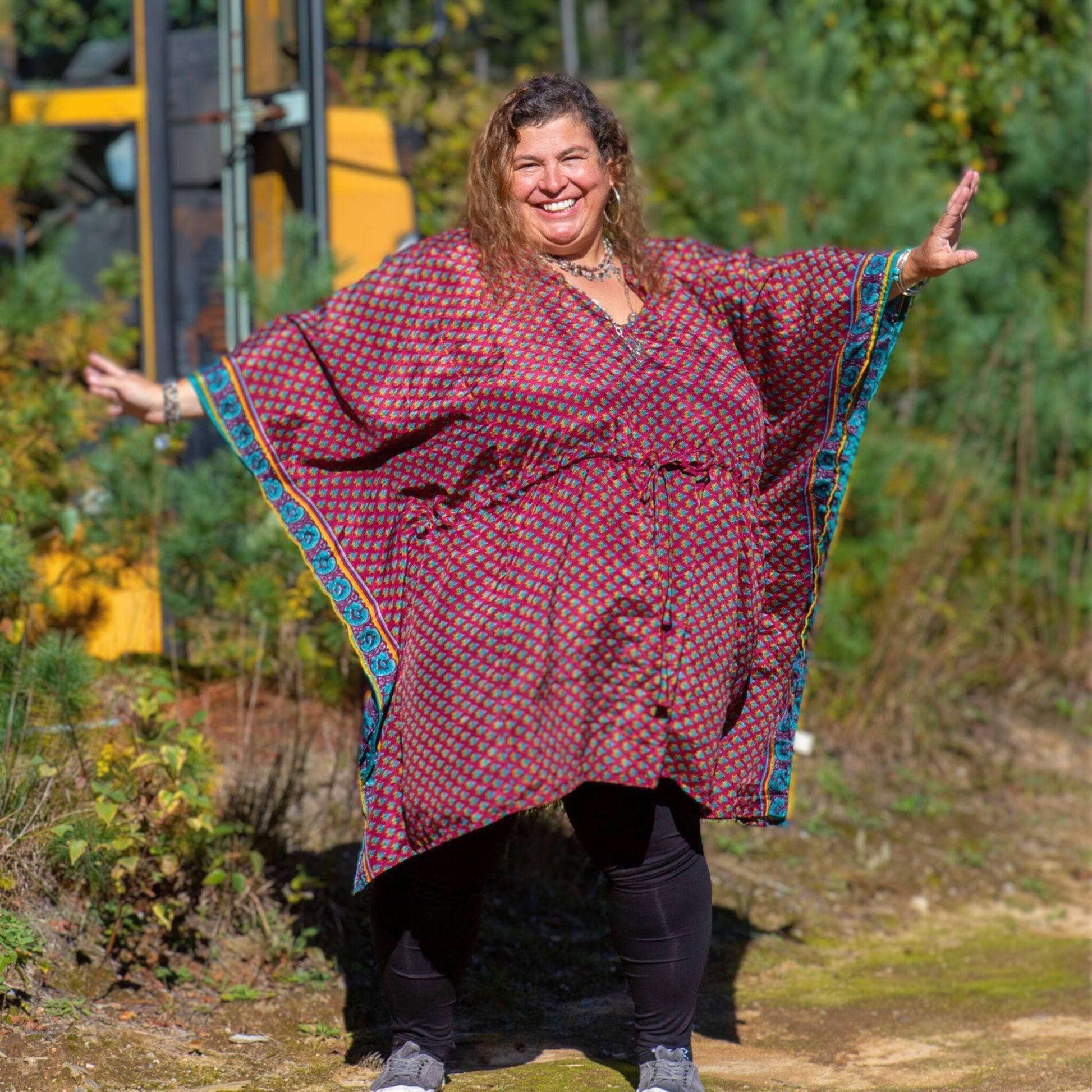 - Extremely versatile, it can be worn as a short kaftan dress or a tunic over jeans or leggings.