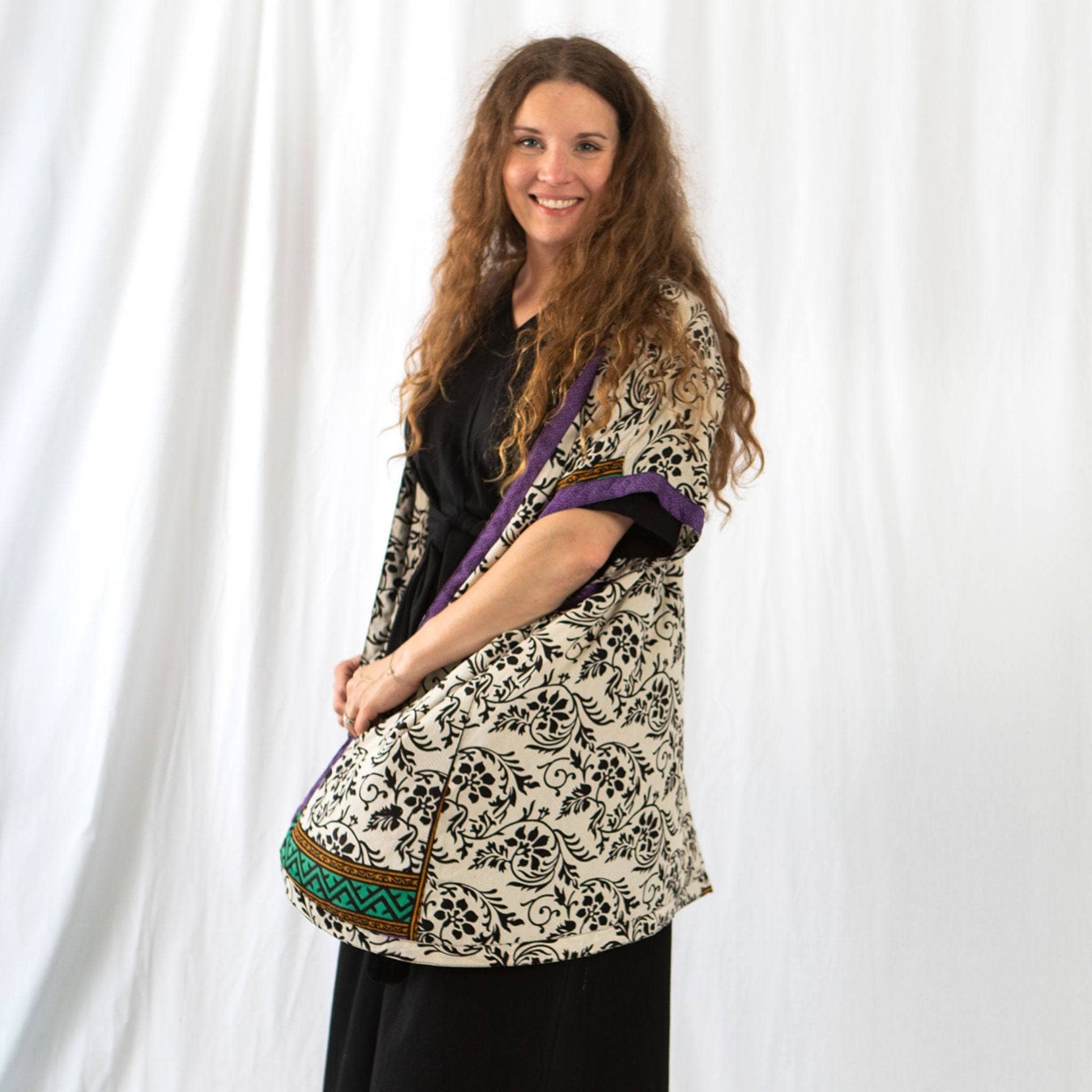 Get your closet ready to embrace the cozy vibes of fall! The soft and flowy Amara Short Sari Dusters are the perfect statement piece for every Autumn look! Crafted from recycled materials, this eco-friendly layer of charm is perfect for those crisp fall days when you want a light and stylish layer. So why not have fun while doing your part for the planet?