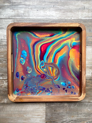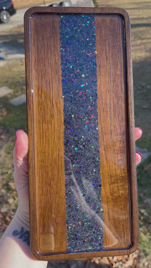 Glitterwhore Rainbow Darkness Small Rectangular Dark Acacia Wood Tray