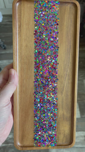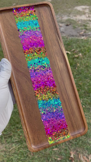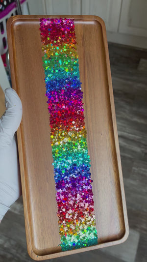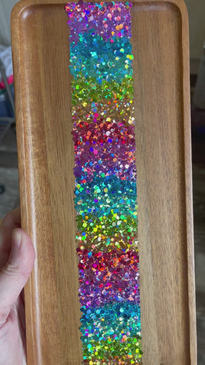 Glitterwhore Rainbow Medium Rectangular Acacia Wood Tray