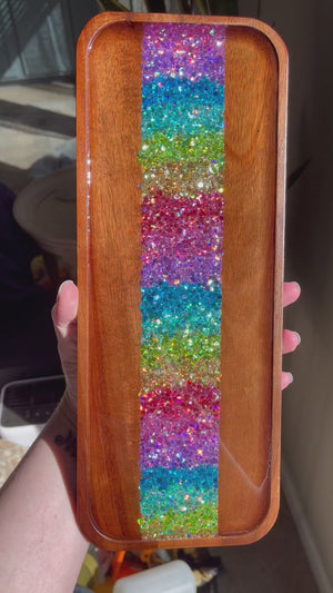 Glitterwhore Rainbow Small Rectangular Acacia Wood Tray