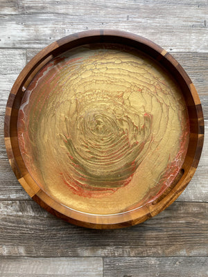 "The Audition Collection" Warm Metallic Neutrals Medium Round Acacia Wood Tray