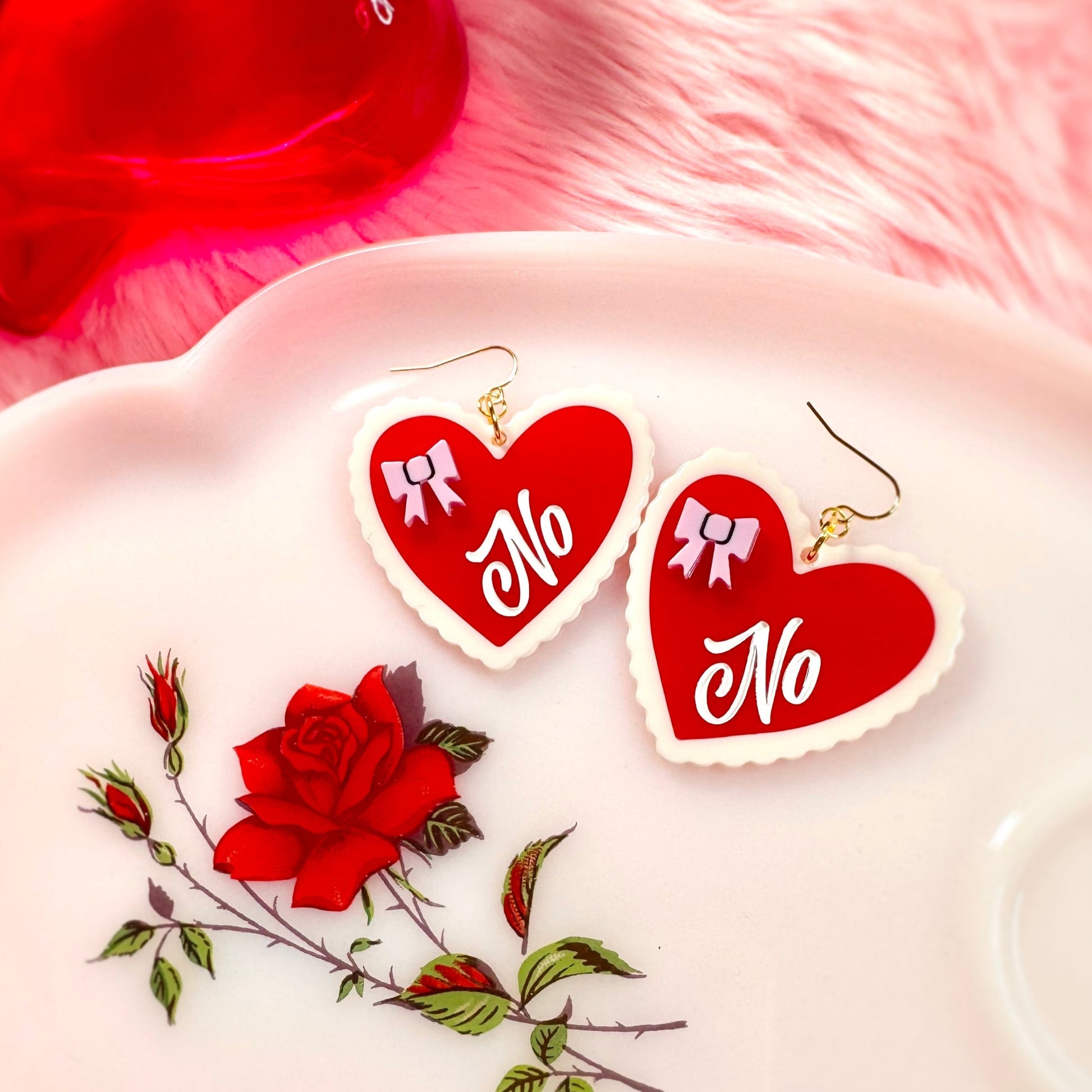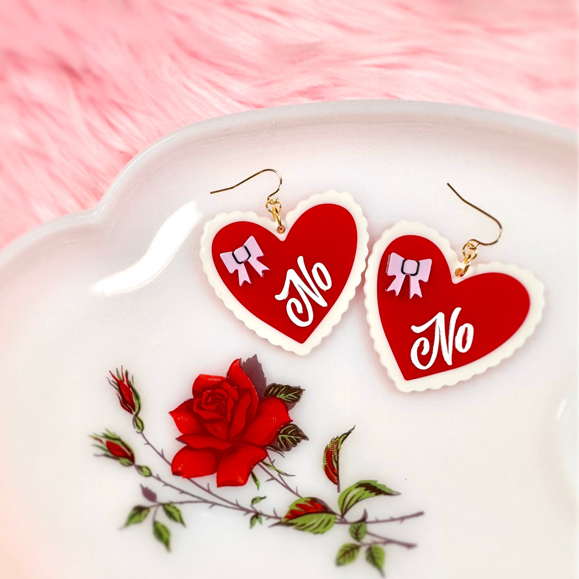 Valentine's Day not your thing? That's okay! These sassy little statement earrings will let everyone know how you really feel. 2" in length.