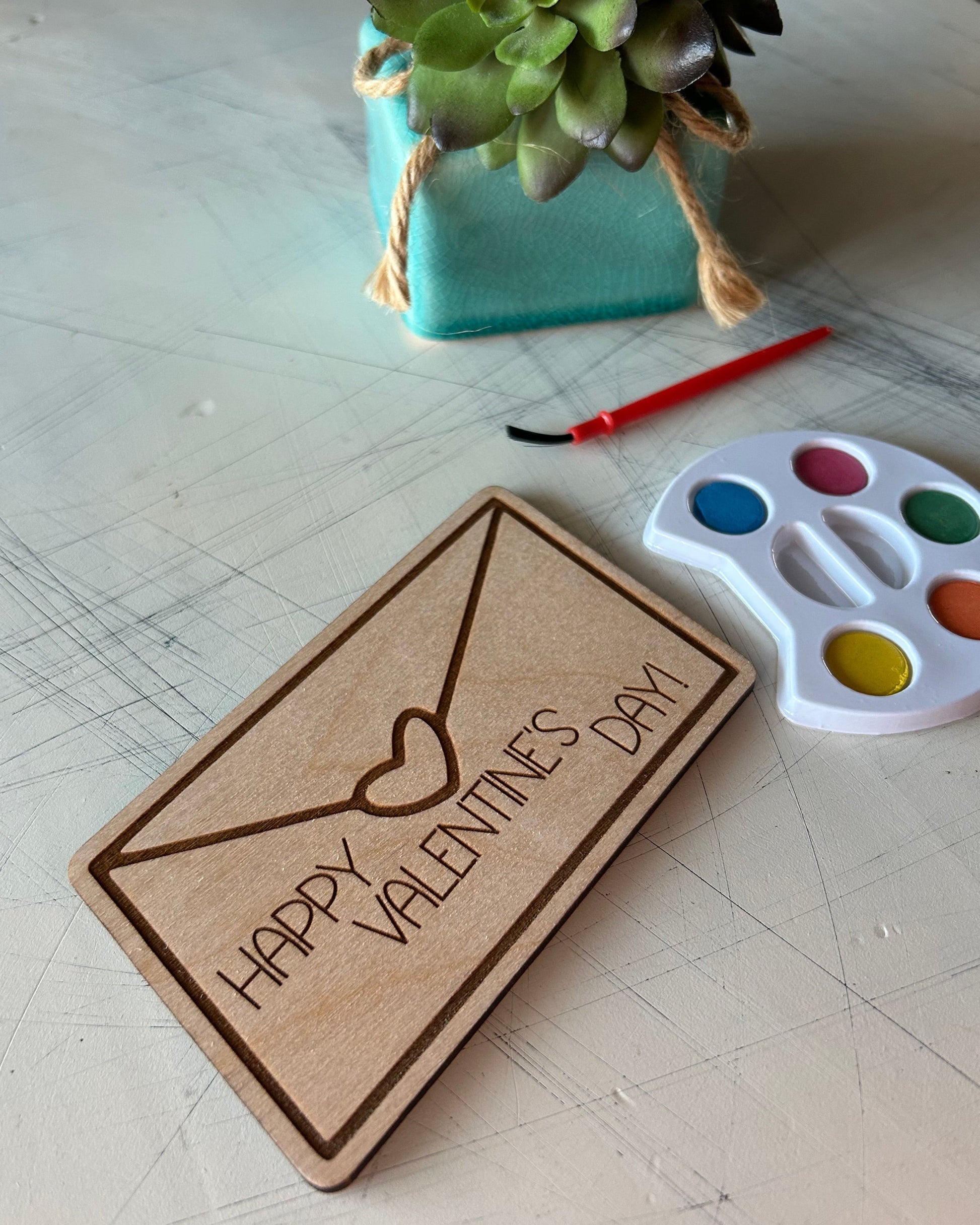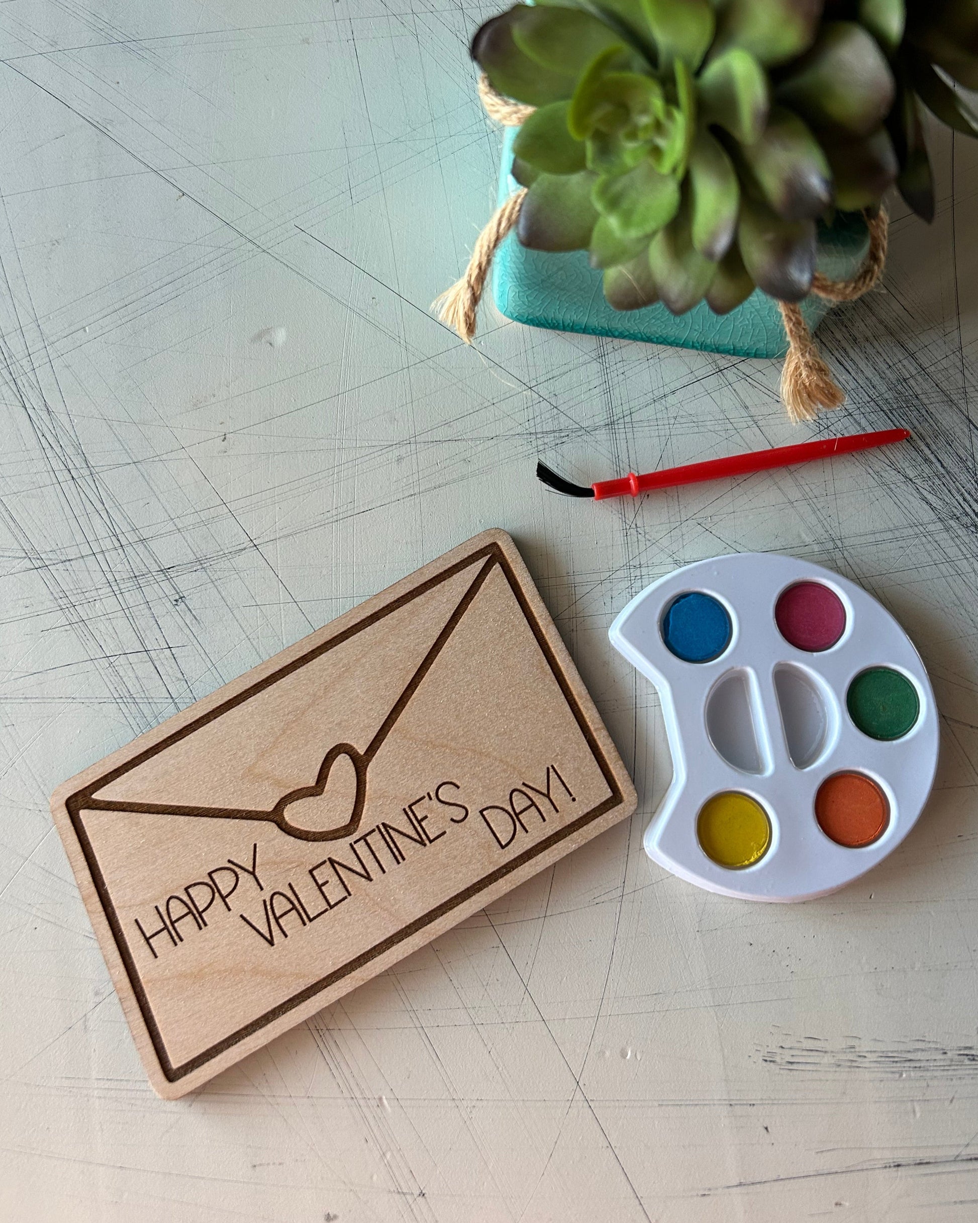 Happy Valentine's Day! This doodle of a classic Valentine creates a cute wood canvas that can be decorated with our watercolors or your own markers, pencils or paint.