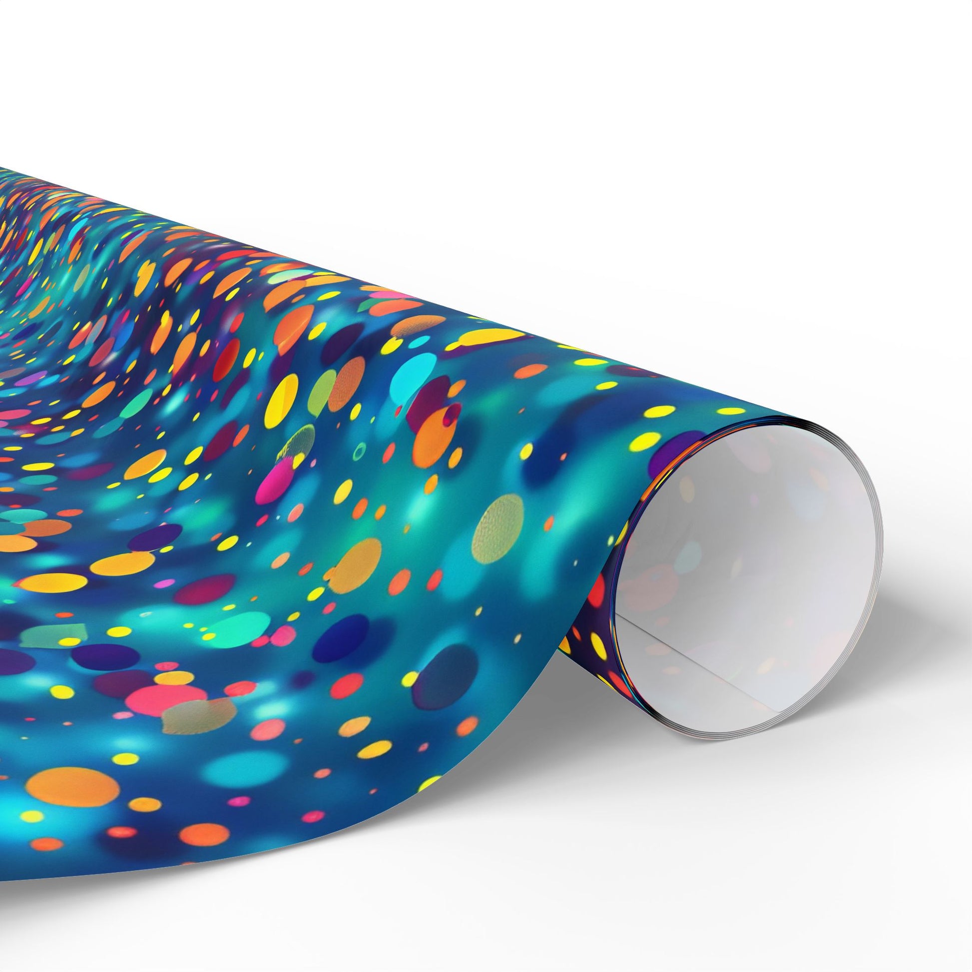 Bespattered Facade Party Time Rainbow Confetti Dots Wrapping Paper | Three Sizes | Glossy or Matte