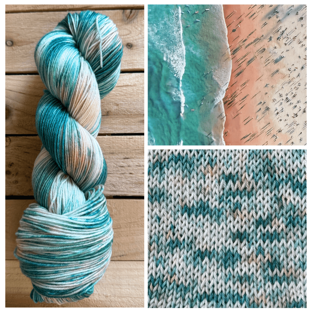 Shoreline captures the calm, refreshing feel of the beach with a blend of seafoam teal, sandy beige, and soft cream. The colors reflect ocean waves meeting warm sand, creating a relaxed and breezy palette. With gentle speckling and natural variation, this colorway brings a coastal vibe to any project.