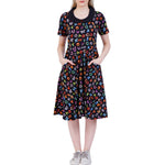 - Short sleeves, collared 3/4th circle twirl adult dress with pockets