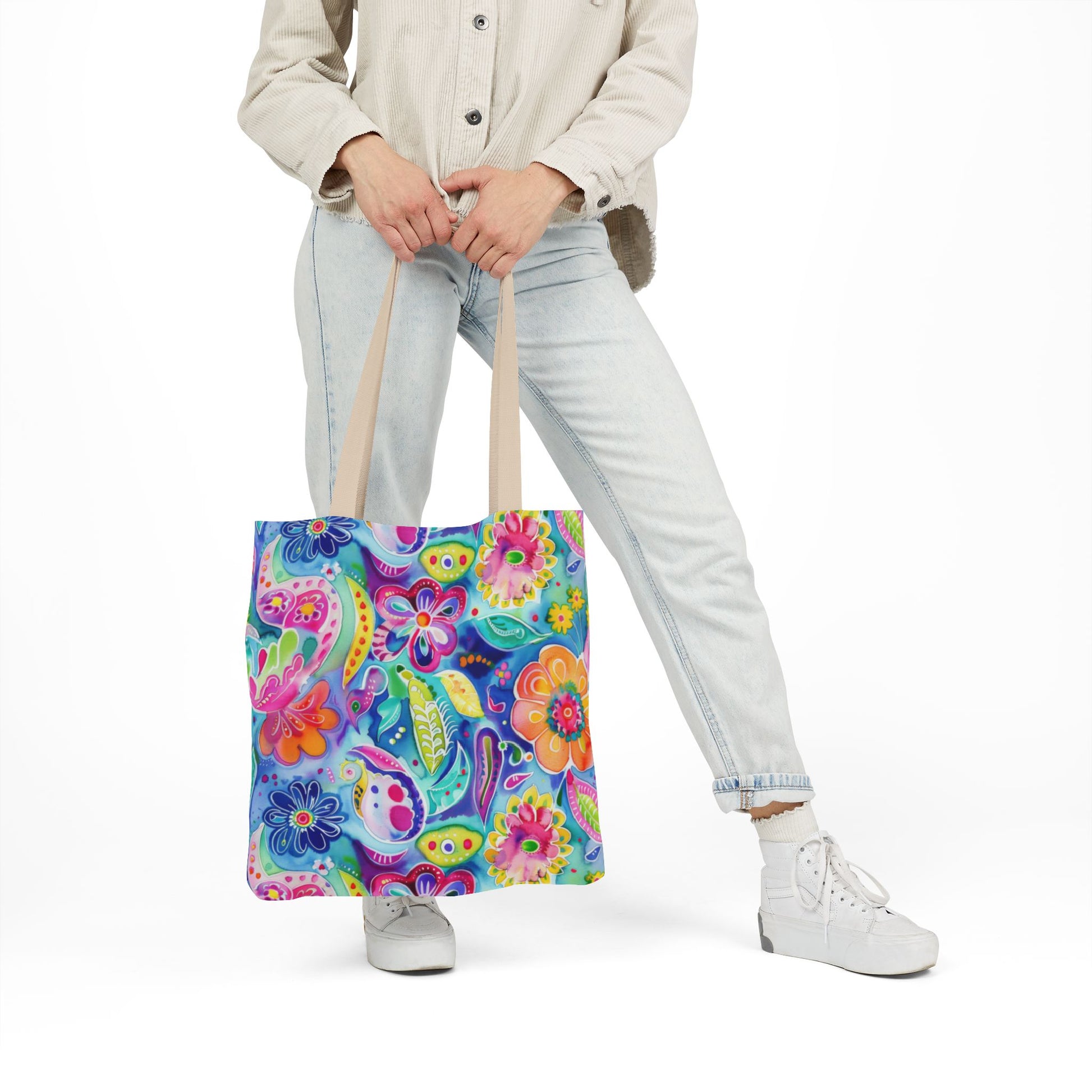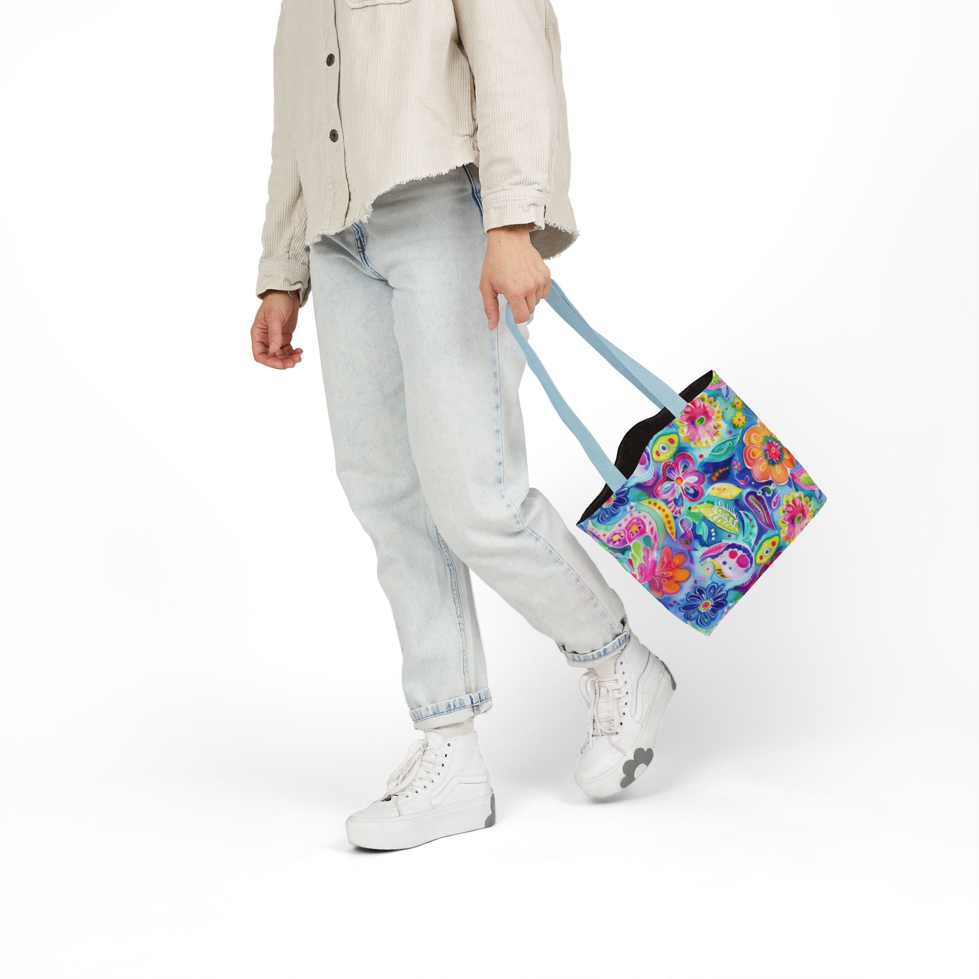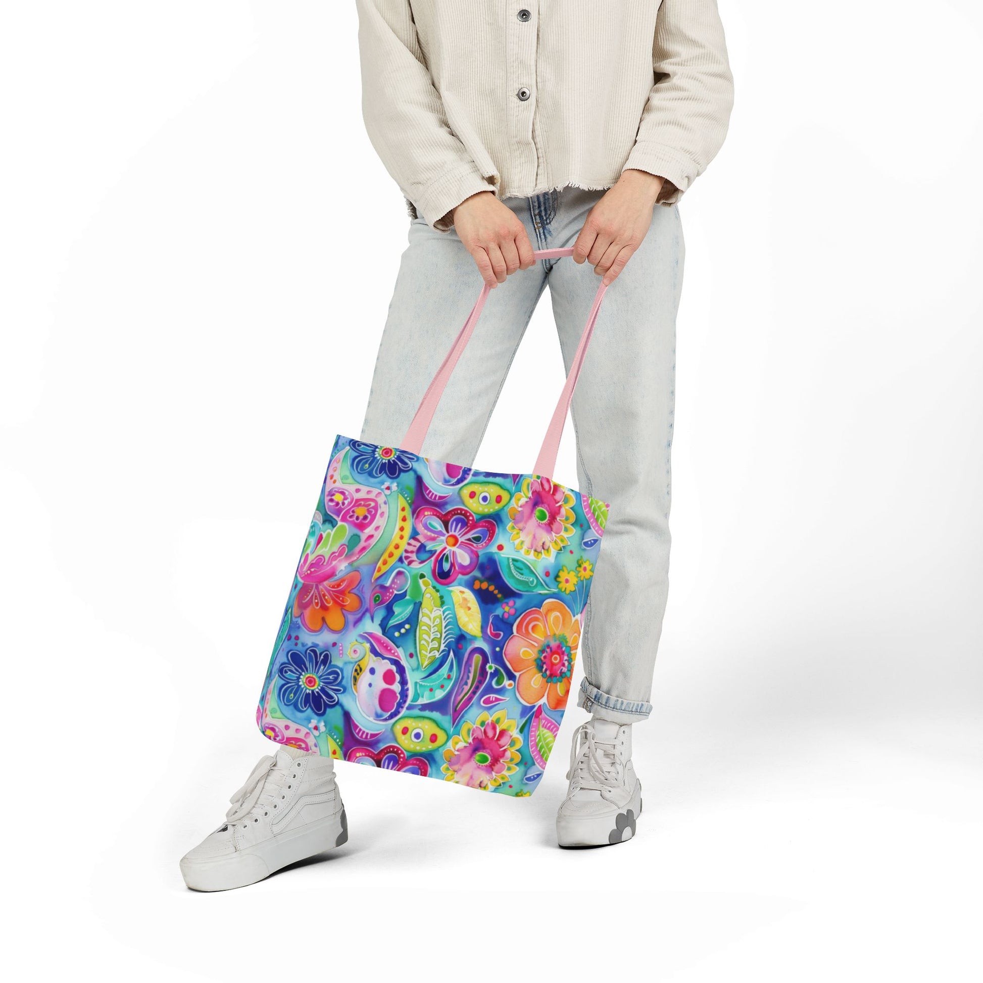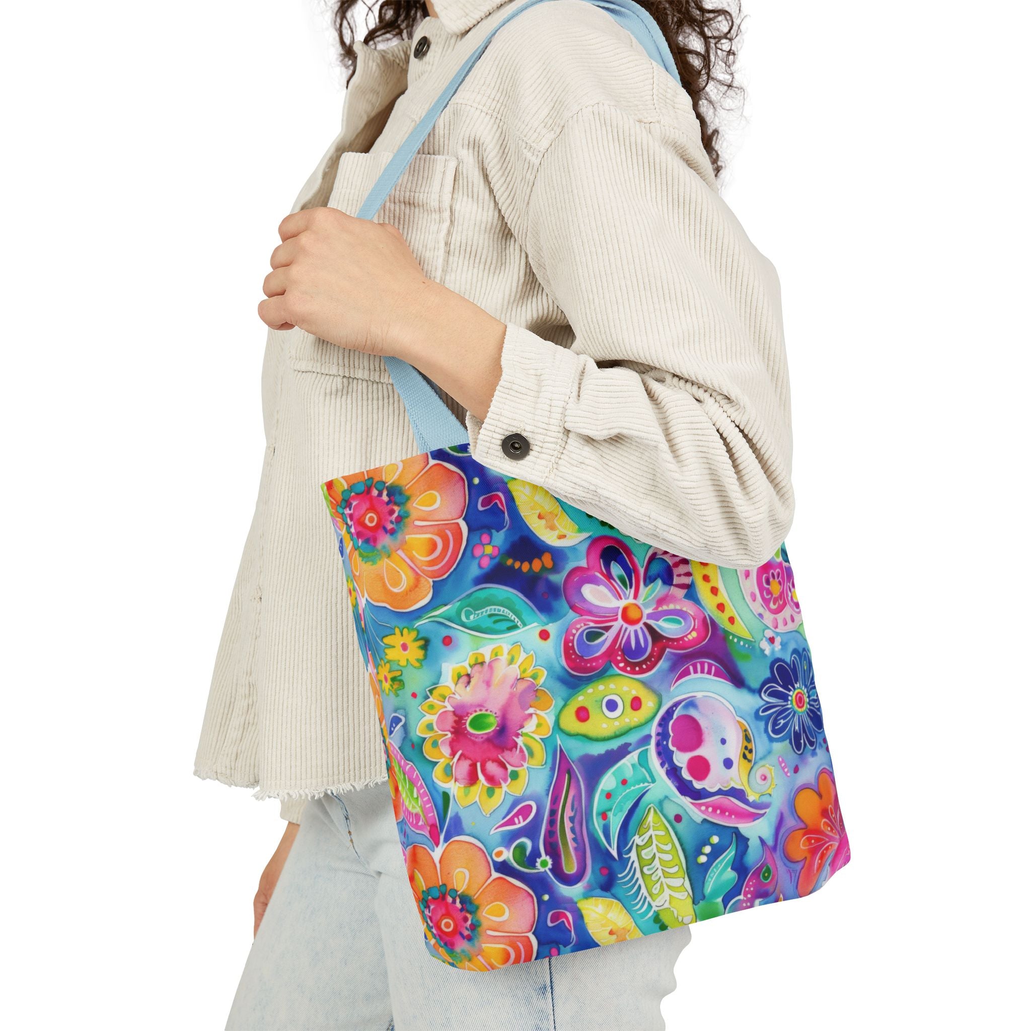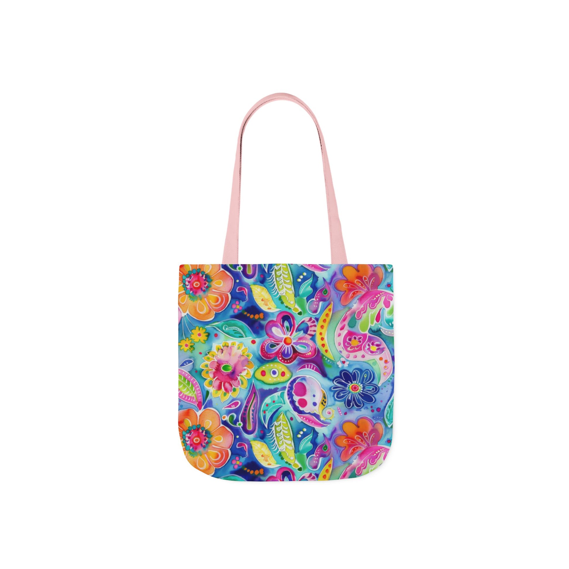 Bespattered Facade Colorful Flowers Canvas Tote Bag | 3 Sizes and 5 Strap Colors