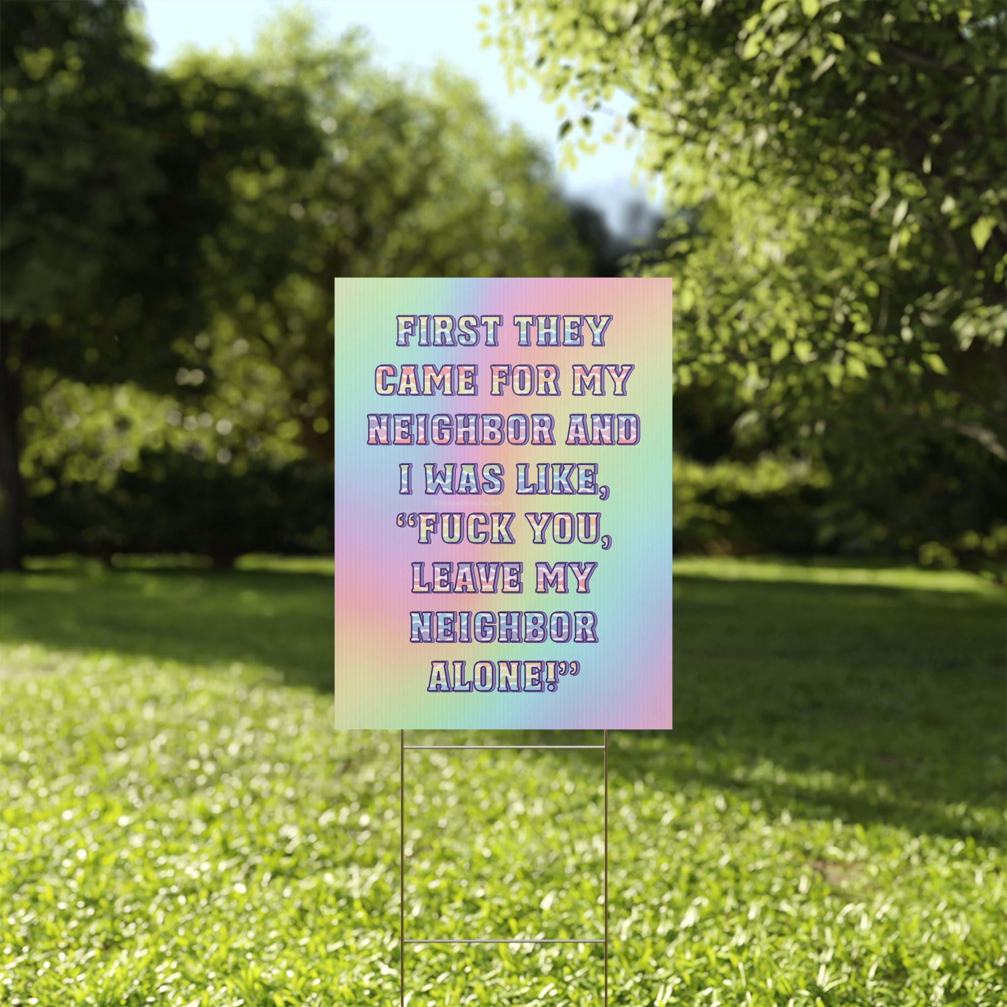 Bespattered Facade Leave my Neighbor Alone Plastic Yard Sign
