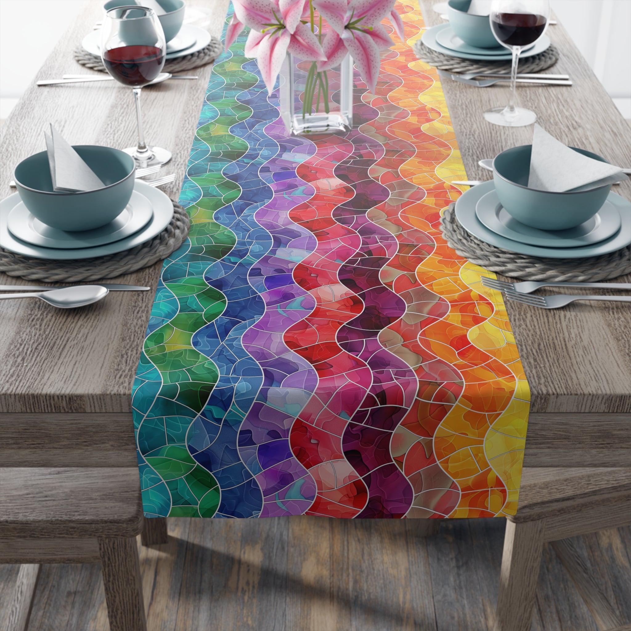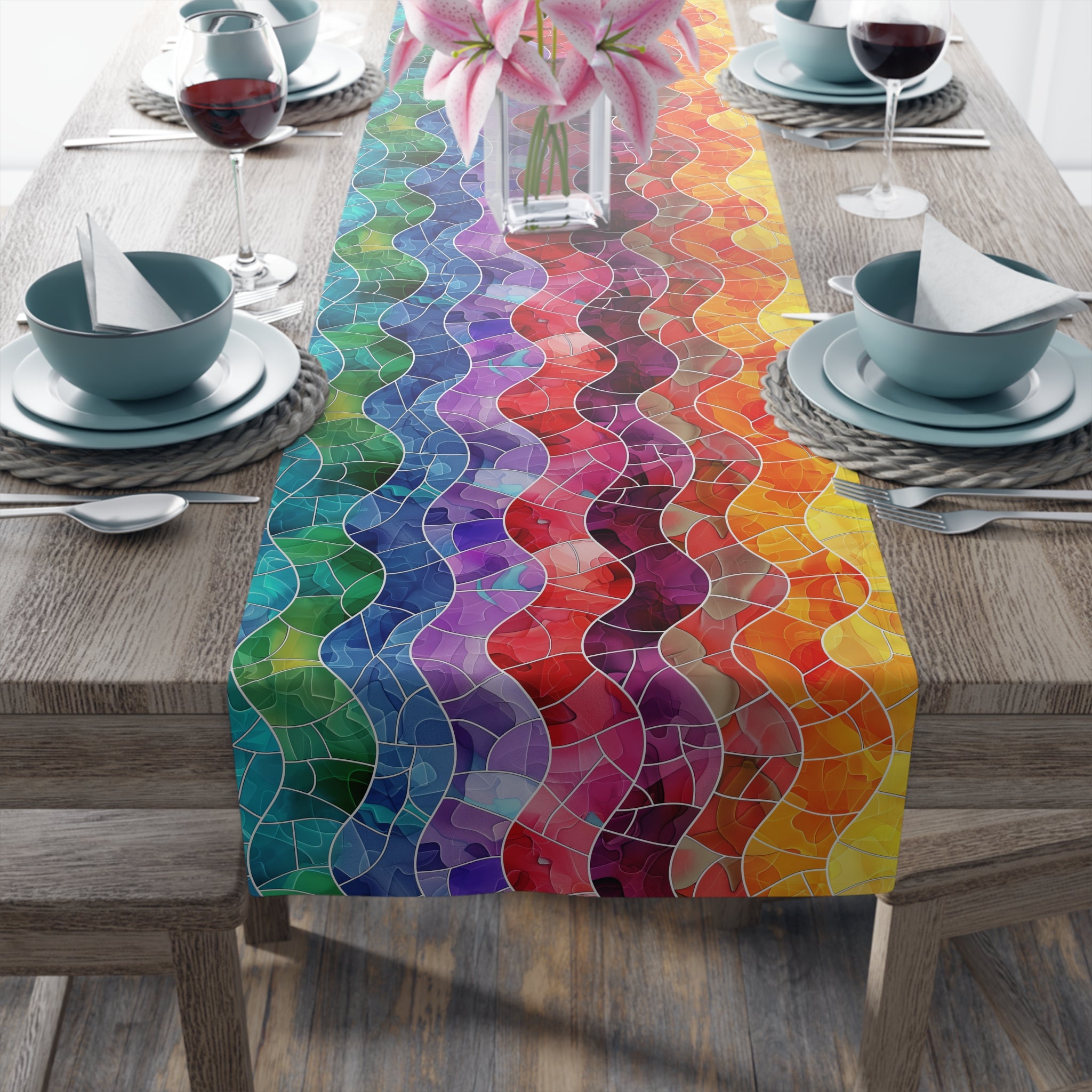 Bespattered Facade Rainbow Mosaic Table Runner (2 sizes)
