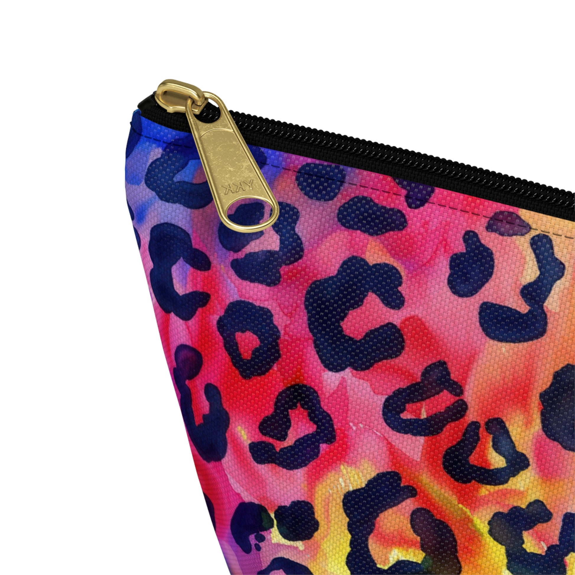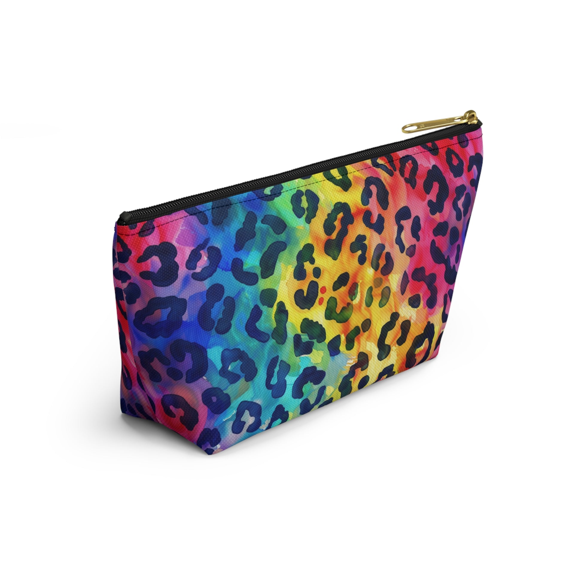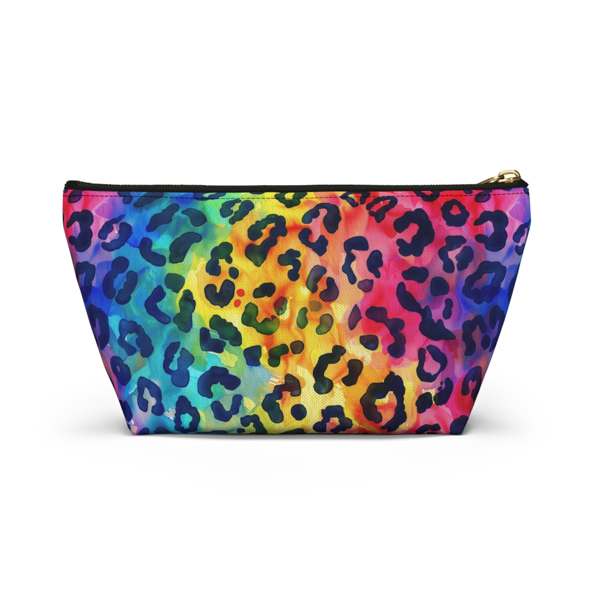 Bespattered Facade Rainbow Watercolor Leopard Accessory Pouch With T-Bottom | 2 Sizes