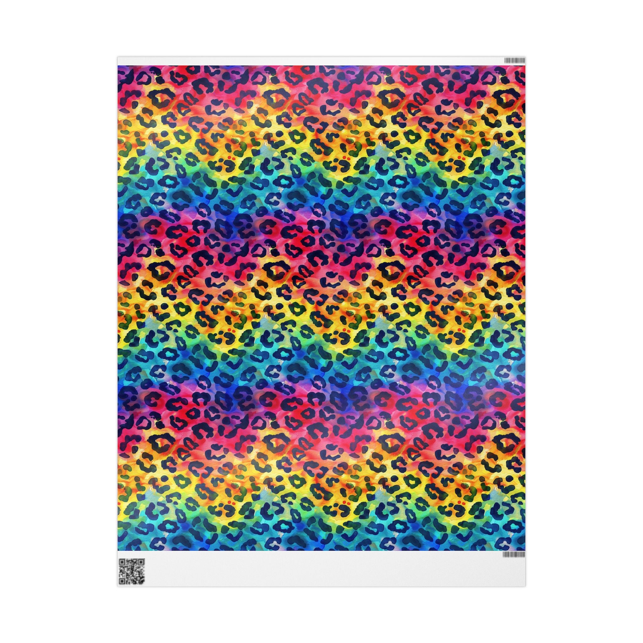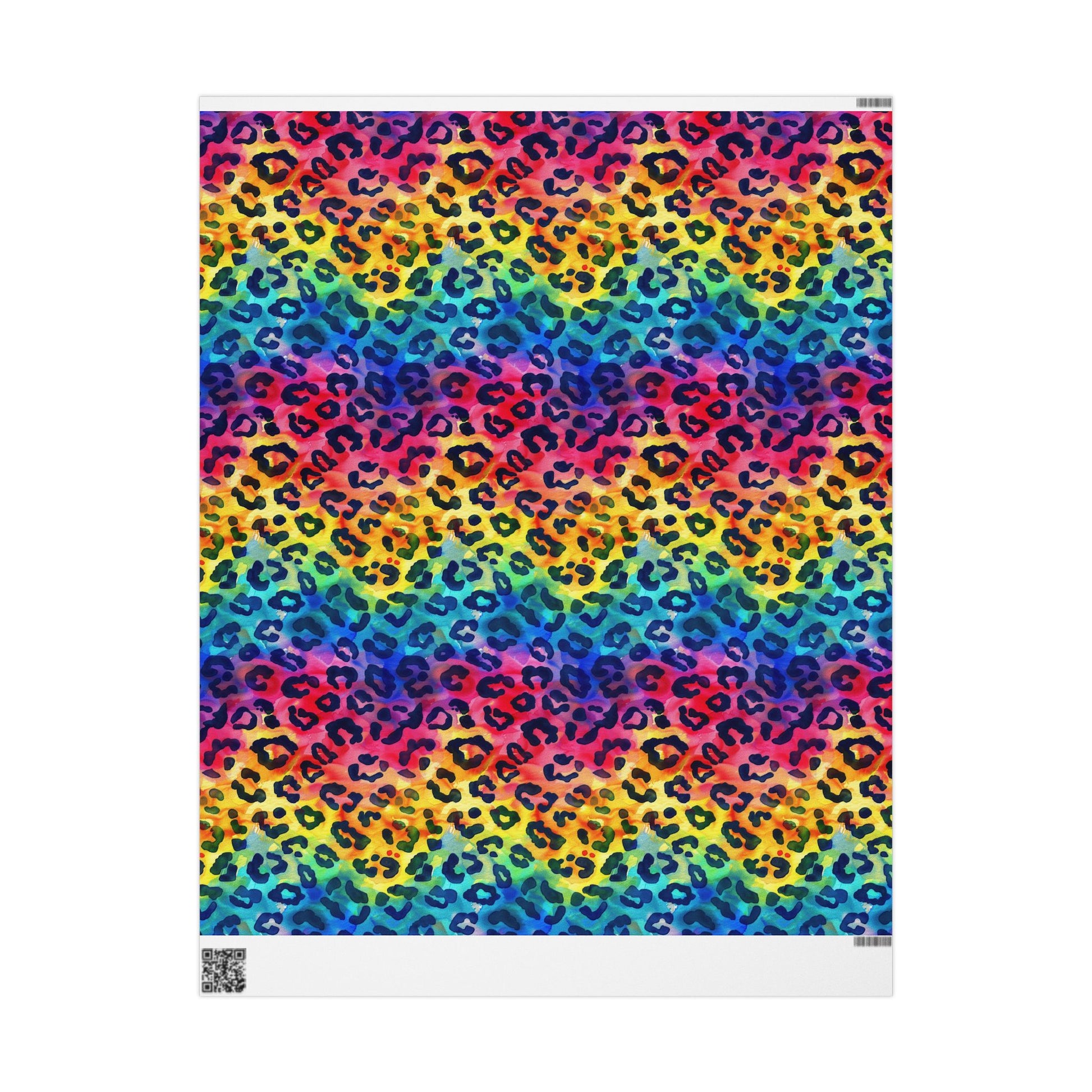 Bespattered Facade Rainbow Watercolor Leopard Wrapping Paper | Three Sizes | Glossy or Matte