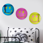 🕶️ EYE-CATCHING ACRYLIC OPTIONS - These eye-catching happy face wall hangings are made of acrylic mirror layered on a foam PVC backing for a look that pops of your walls. Each size option combines bold yellow, bright light blue, and vibrant pink. Great for dorm, studio, home office, den, man cave, living room, teen’s bedroom, kid’s room, or playroom.