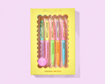 Brighten every day with the perfect present! This medium ballpoint pen set includes five lively shades, each adorned with fun compliments and uplifting affirmations, highlighted by shiny gold foil accents and nestled in adorable packaging. For an extra touch, pair it with a cute notepad from our collection. Perfect for school supplies or anytime inspiration!