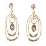 Experience the exquisite beauty of Henle Green Abalone Chandelier Golden Drop Earrings. Made with hand-crafted golden bronze and featuring stunning grey abalone stones, these earrings measure 2" in length and 0.75" at their widest point. With a total weight of 7.5g, they are the perfect accent to elevate any look. Add them to your collection today and be inspired by their captivating charm.