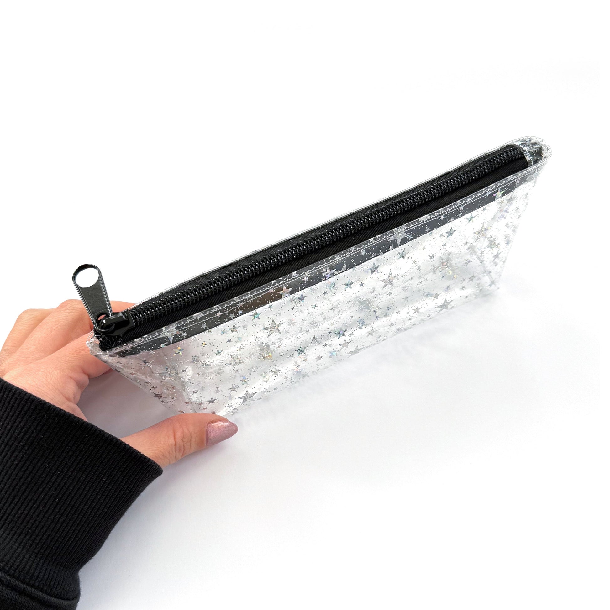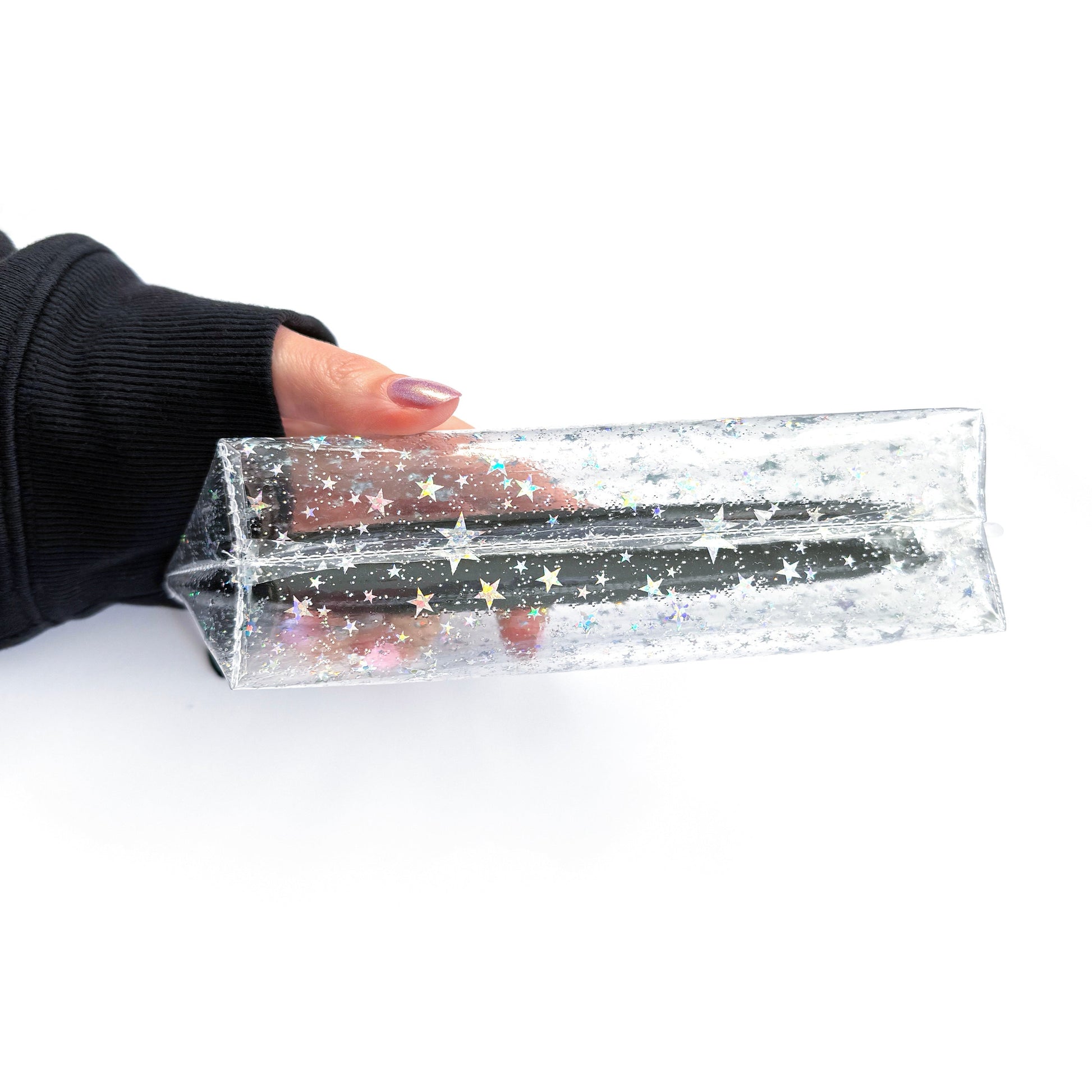 • 12 gauge transparent glitter vinyl with iridescent holo stars