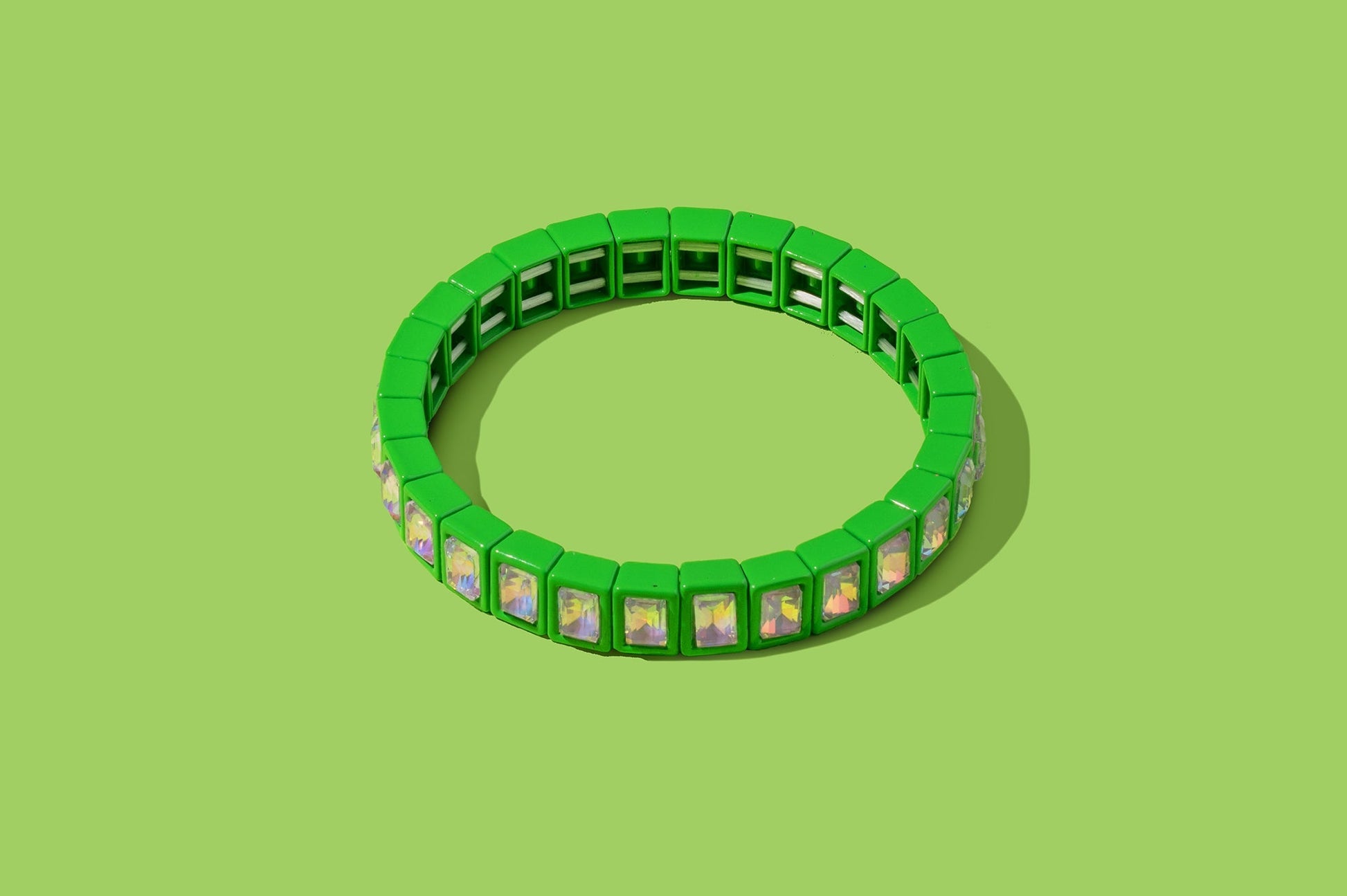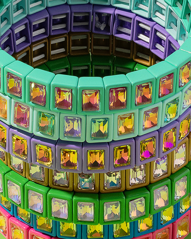 These vibrant enamel bracelets adorned with glittering stones are ideal for mixing and matching. Cheerful and lively, they make a charming gift that brings a whimsical flair to any look.
