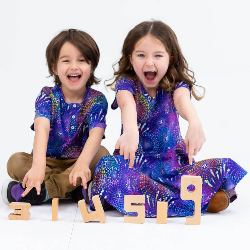 Let's celebrate Pi Day! Bursting with a rainbow of color, Pi fireworks explode with joy for the love of math. There are pistils of Pi symbols, star-flung Pi brocades, dragon's eggs of stars and equations, comets spelling out "3.1415", and even a daisy formed by the first 91 digits of Pi. 95% cotton, 5% spandex with a Henley collar button closure.