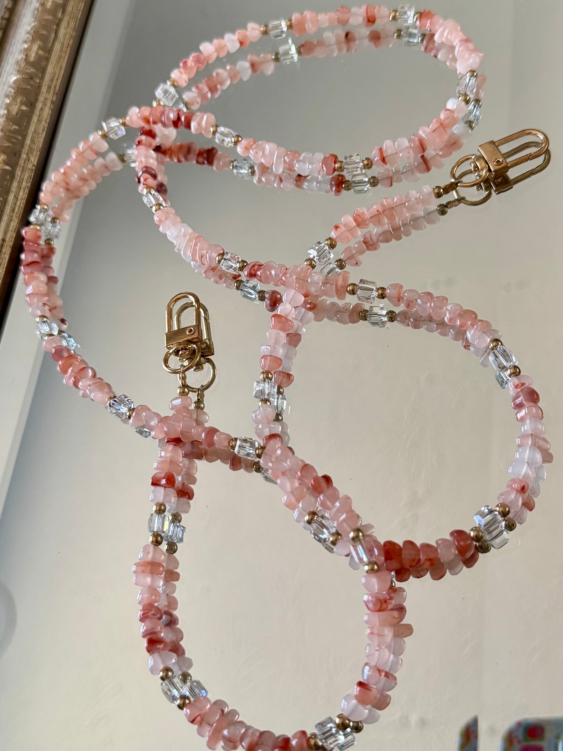 One thing, three functions, AND it's pink? Say no more! This super colorful, super functional pink beaded little beauty can be an ID badge lanyard, a phone crossbody strap, or a vibrant chain for your handbag. (Phone strap is designed to fit all phones and allow for unencumbered charging.)