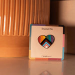 Show your pride with our Progressive Pride Heart Enamel Pin. Featuring the Progressive Pride flag in a heart design, this pin is perfect for jackets, backpacks, and more. Celebrate love and inclusivity wherever you go!