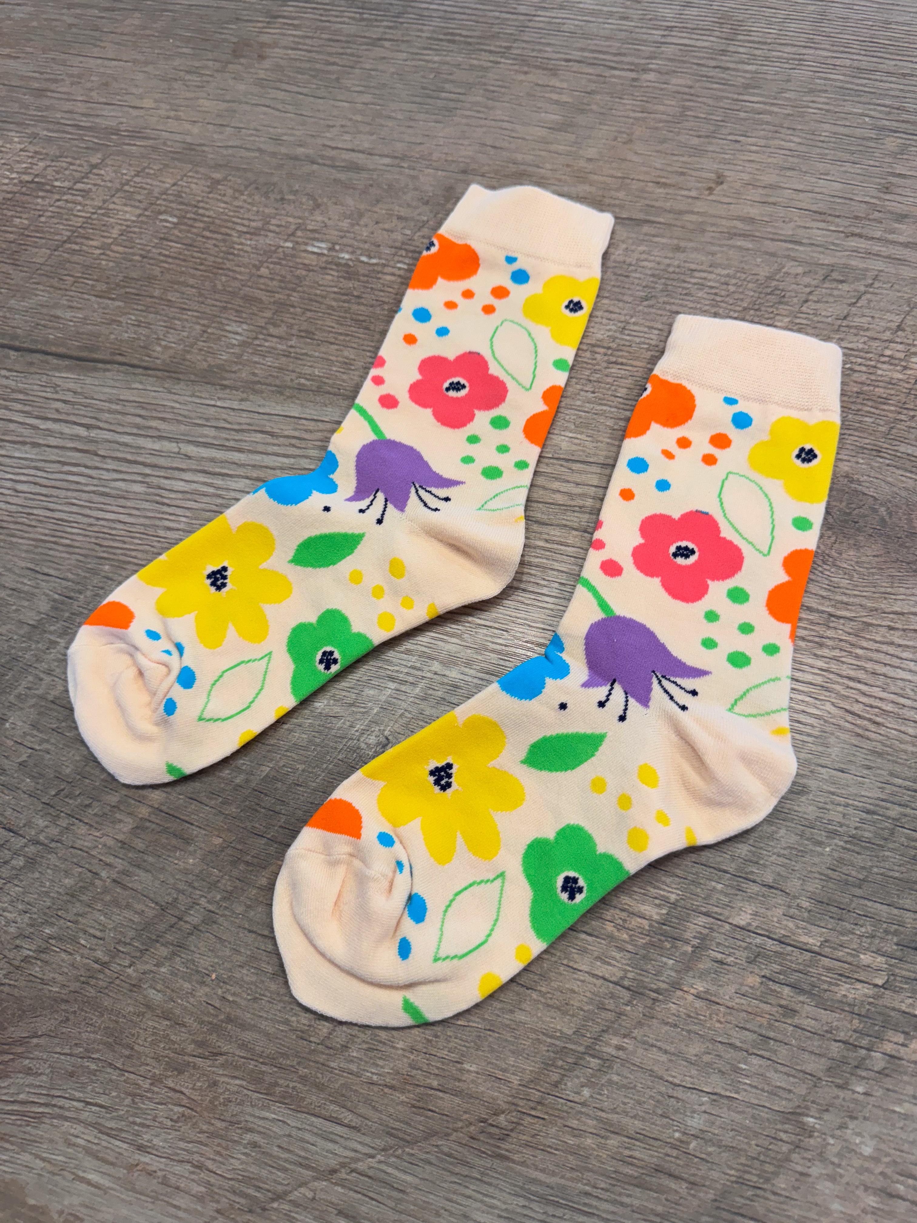 Rainbow Flowers Colorful Floral Unisex Mid-Calf Adult Socks