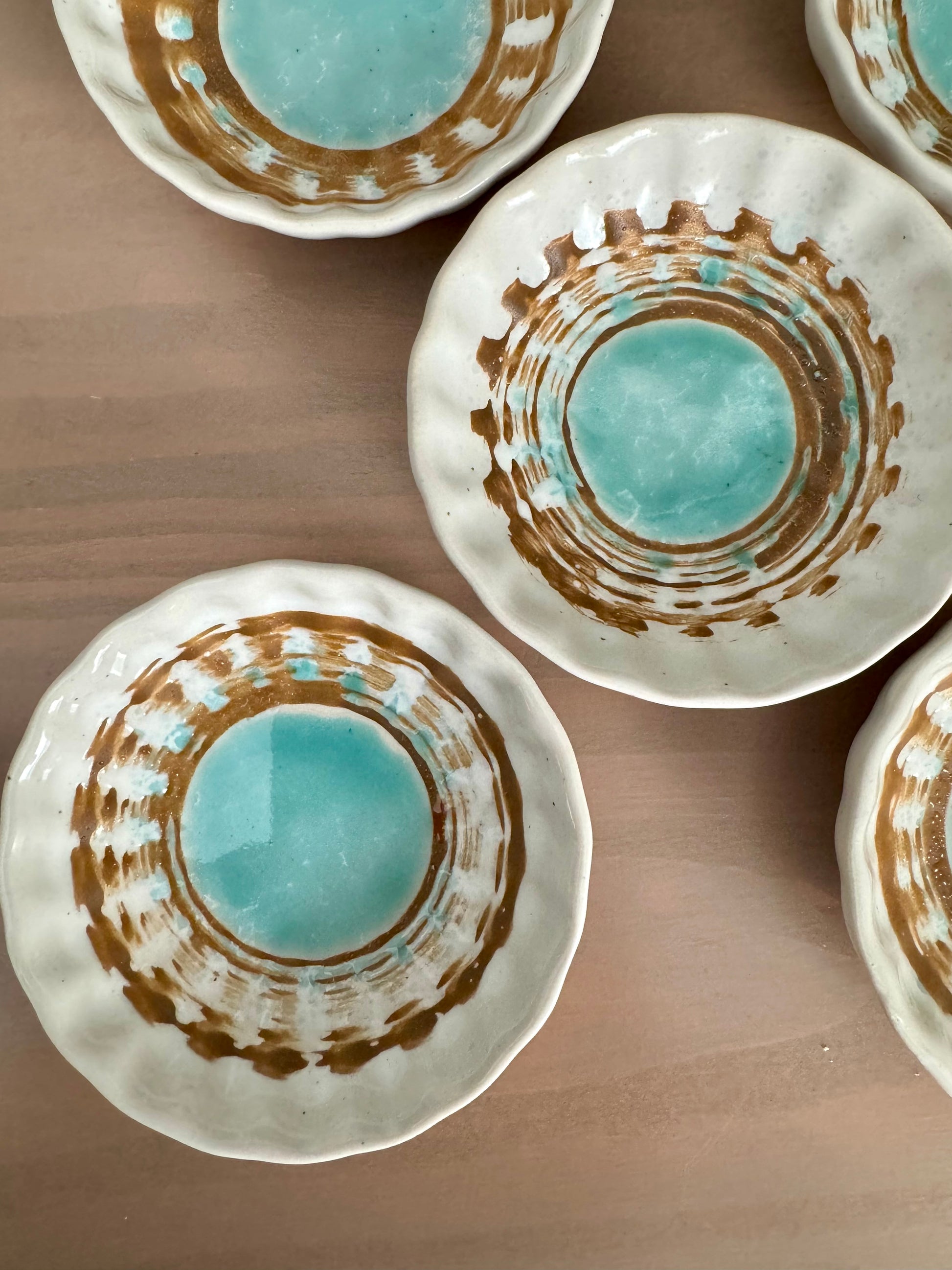 I love little dishes to act as a "catch all" around the house. Not only are they pretty, I also always have a safe place to toss jewelry and other small items, no matter where I am or what I'm doing. Each dish is one of a kind, please expect slight differences in color and pattern, pictures are for example purposes only.