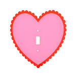 A cute scalloped heart to make switching on the lights so much more colorful. measures appx 7” tall by 7” wide. Choose from standard flip switch (seen in photo) or rocker switch. Does not come with screws for mounting but should fit standard US sockets.